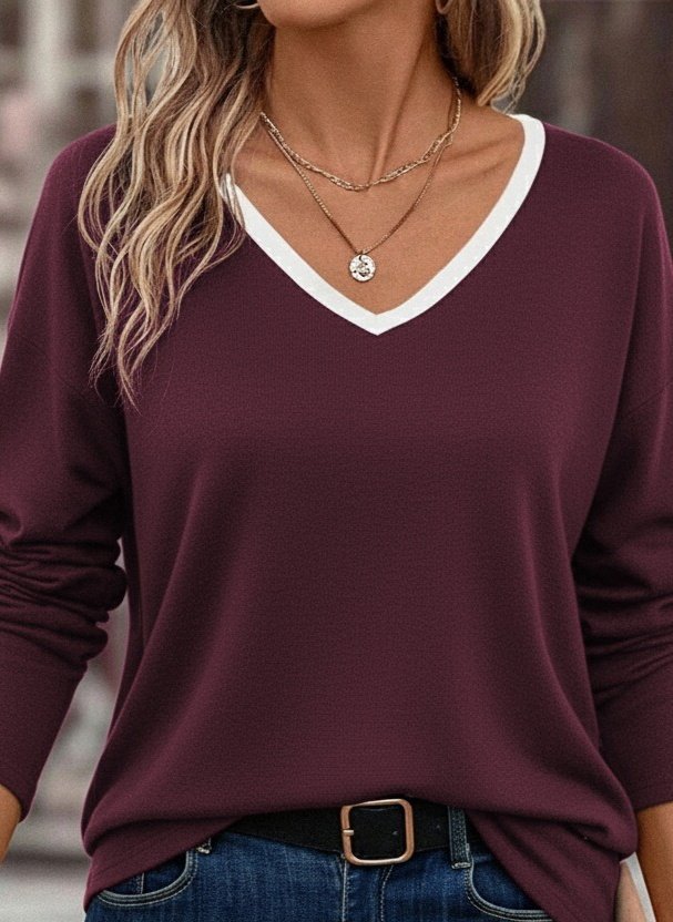 Kadın Uzun Kollu V Yakalı Viskon Iki Iplik Bluz