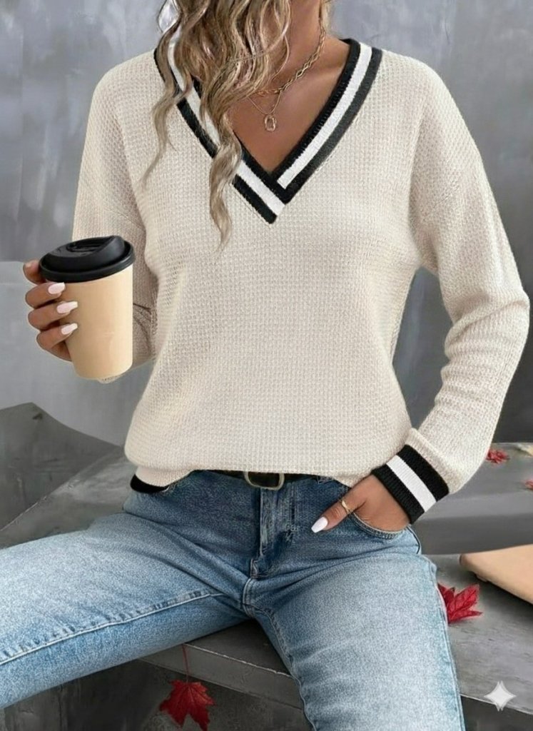 Kadın Uzun Kollu V Yakalı Waffle Bluz