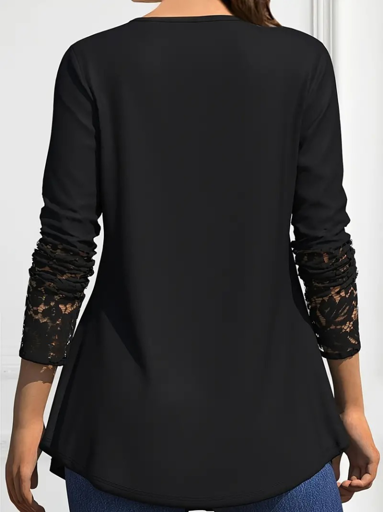 Kadın Uzun Kollu Yaka Kol Ucu Dantel Detaylı önden Düğmeli Viskon Bluz