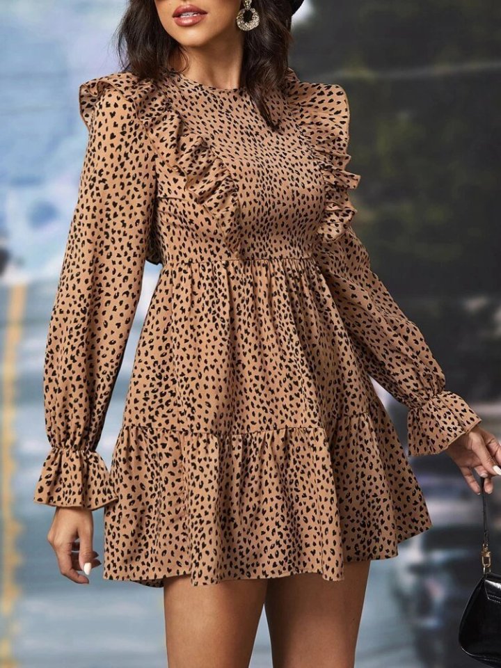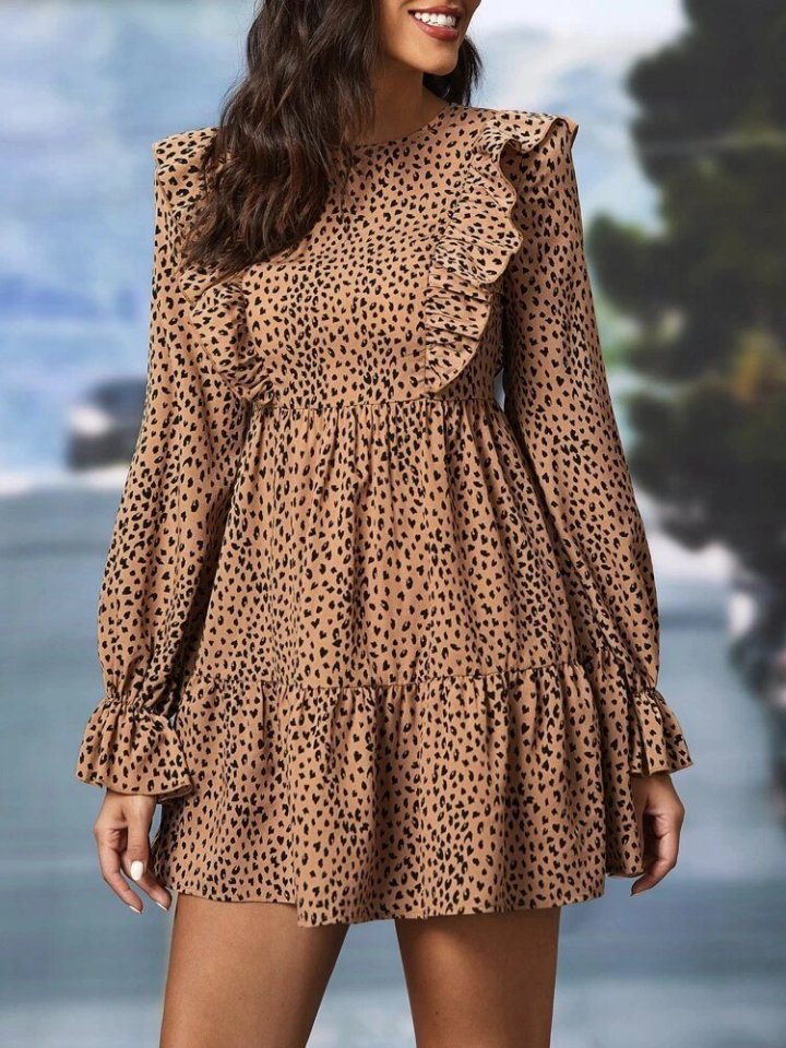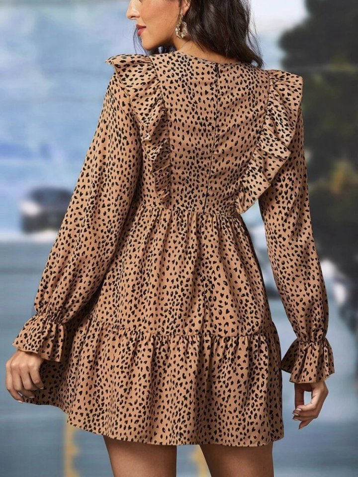 Kadın Uzun Kollu Yaka Ve Sırt Fırfır Detay Mikro Mini Boy Elbise