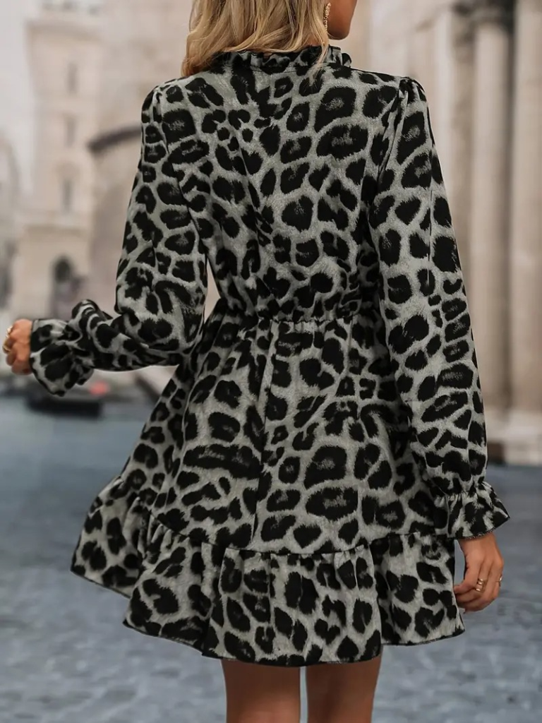 Kadın Uzun Kollu Yakadan Bağlamalı Beli Lastikli şardonlu Dalgıç Elbise