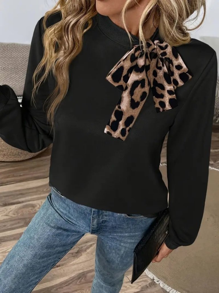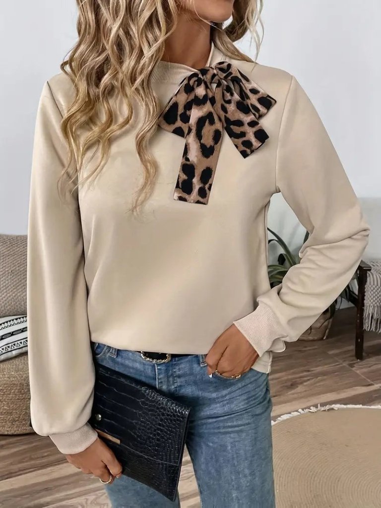 Kadın Uzun Kollu Yakadan Bağlamalı Viskon Iki Iplik Bluz