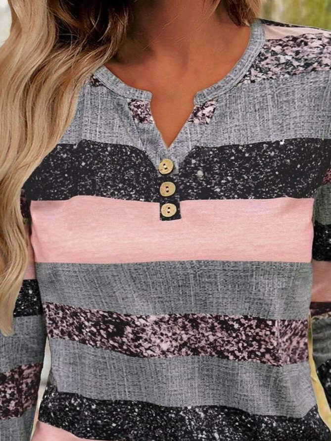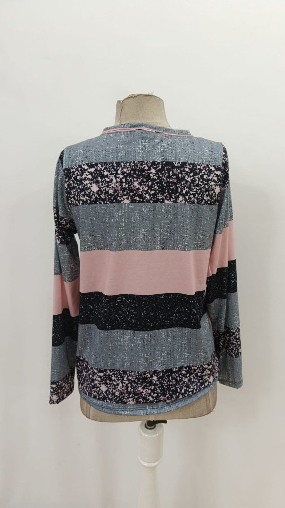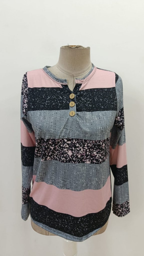 Kadın Uzun Kollu Yakadan Düğmeli çizgili Desenli Süprem Bluz