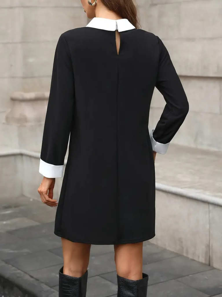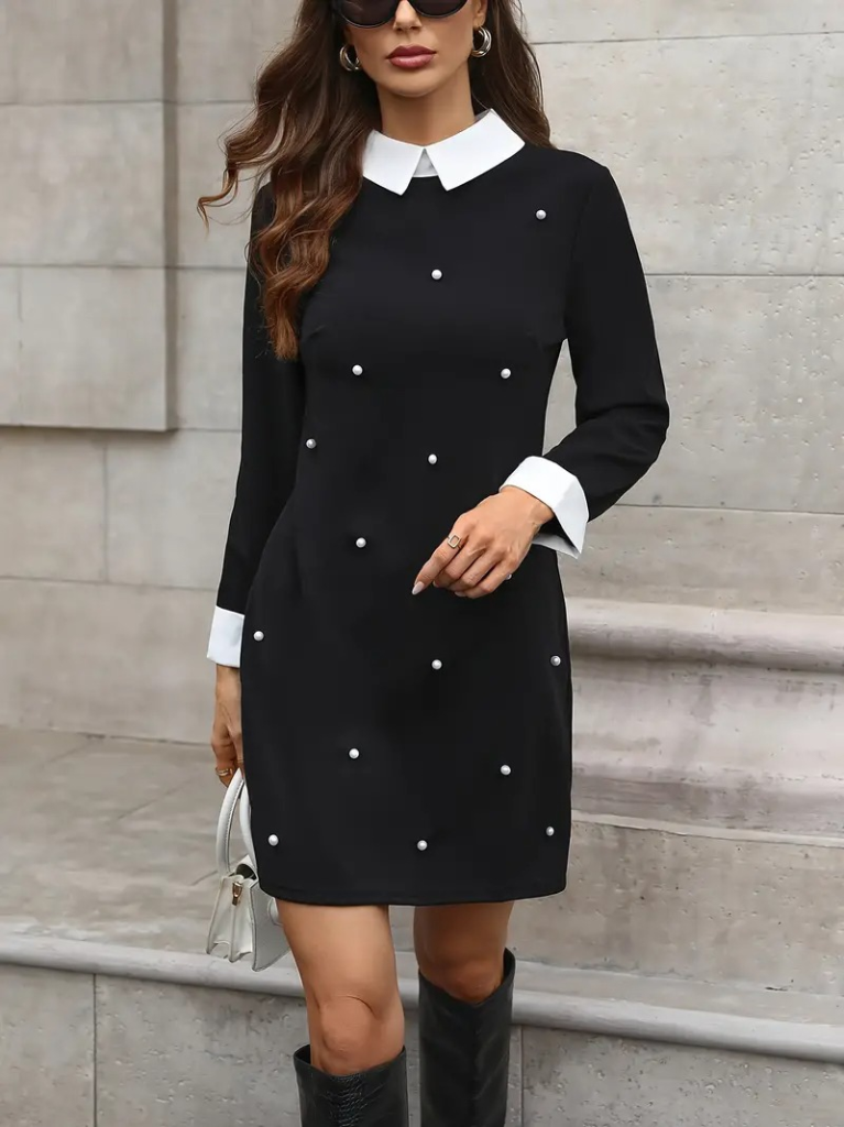 Kadın Uzun Kollu Yakalı Incili Ithal Krep Elbise