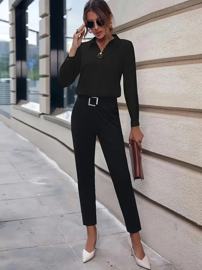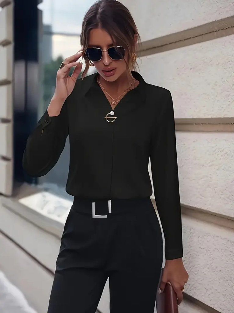 Kadın Uzun Kollu Yakalı Trikoton Gömlek