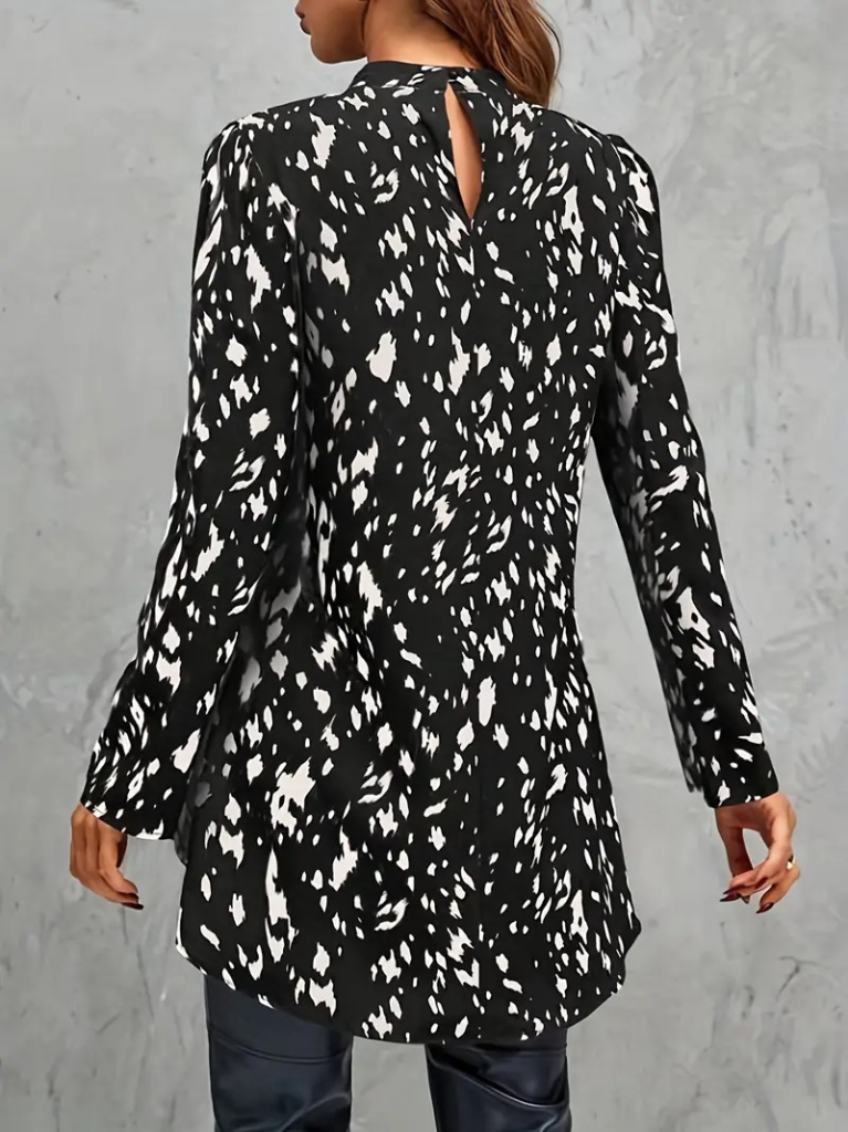 Kadın Uzun Kollu Yarı Balıkçı Yaka Desenli Dokuma Bluz