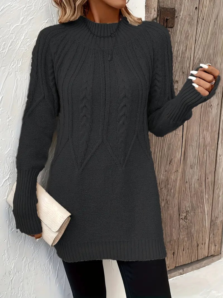Kadın Uzun Kollu Yarı Balıkçı Yaka Triko Bluz