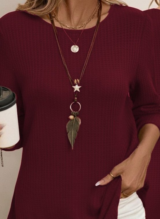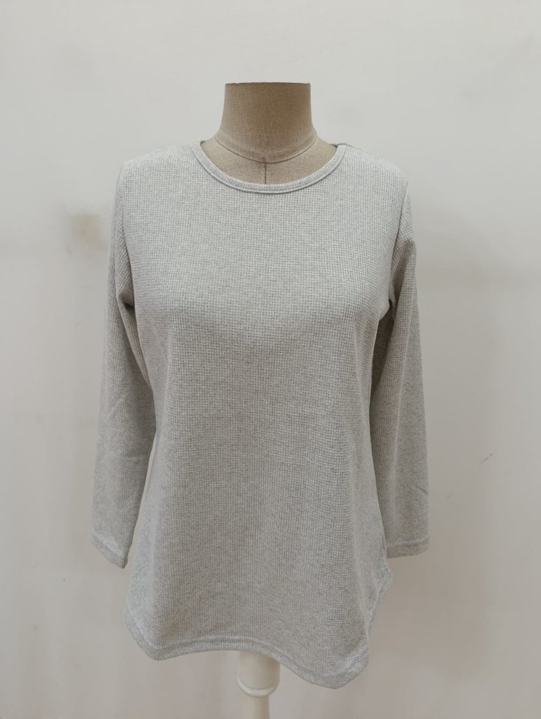 Kadın Uzun Kollu Yuvarlak Yaka Arkadan Düğmeli Waffle Bluz