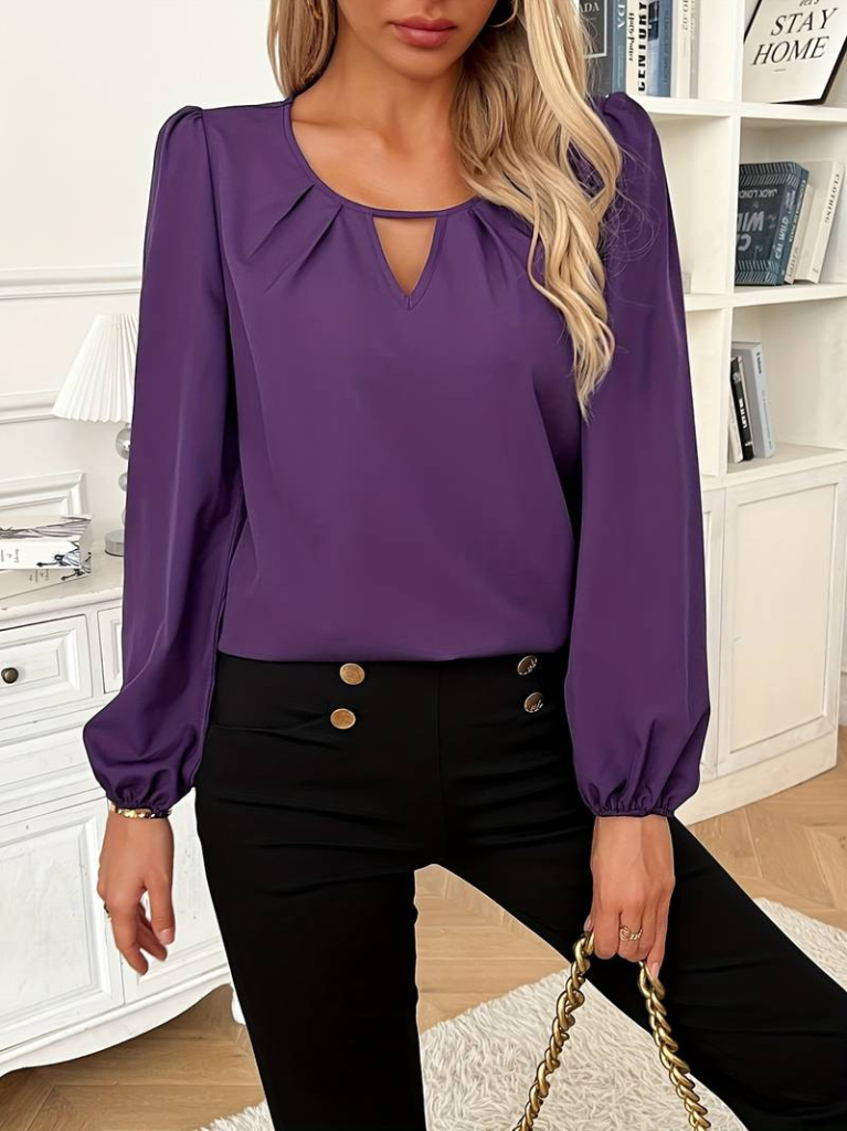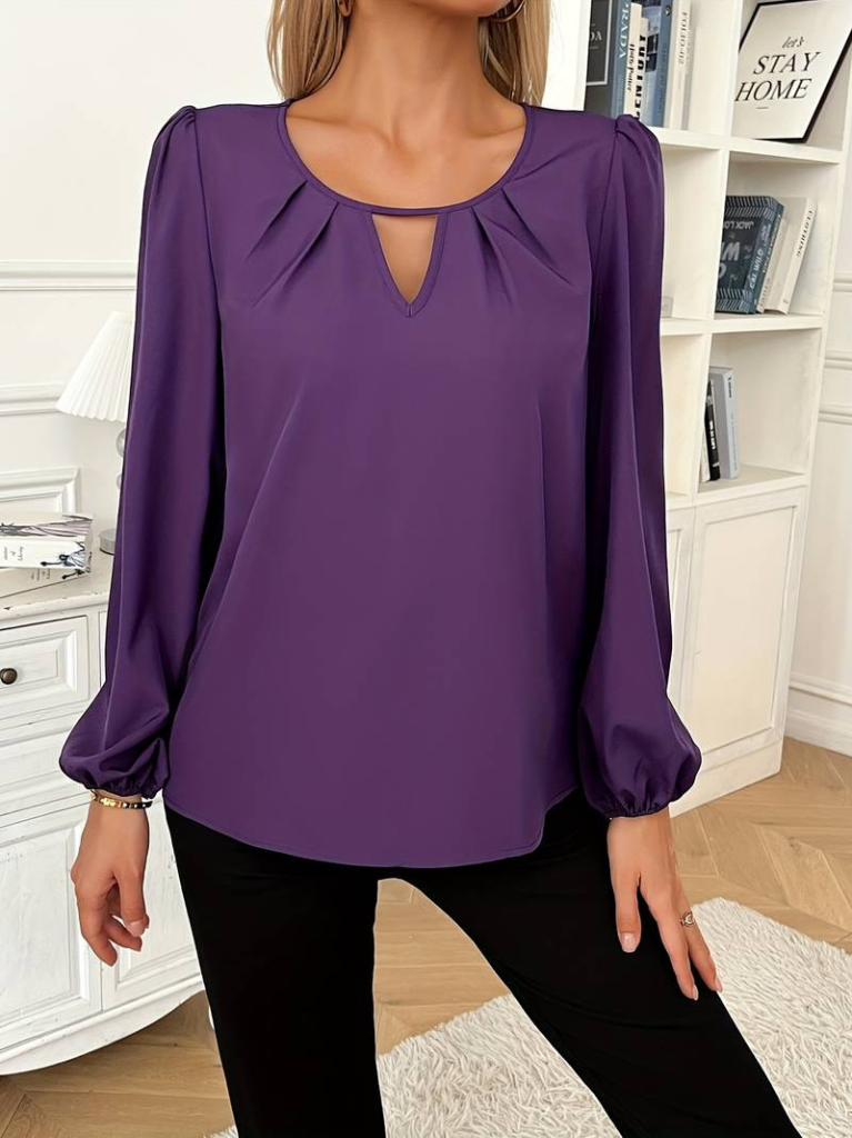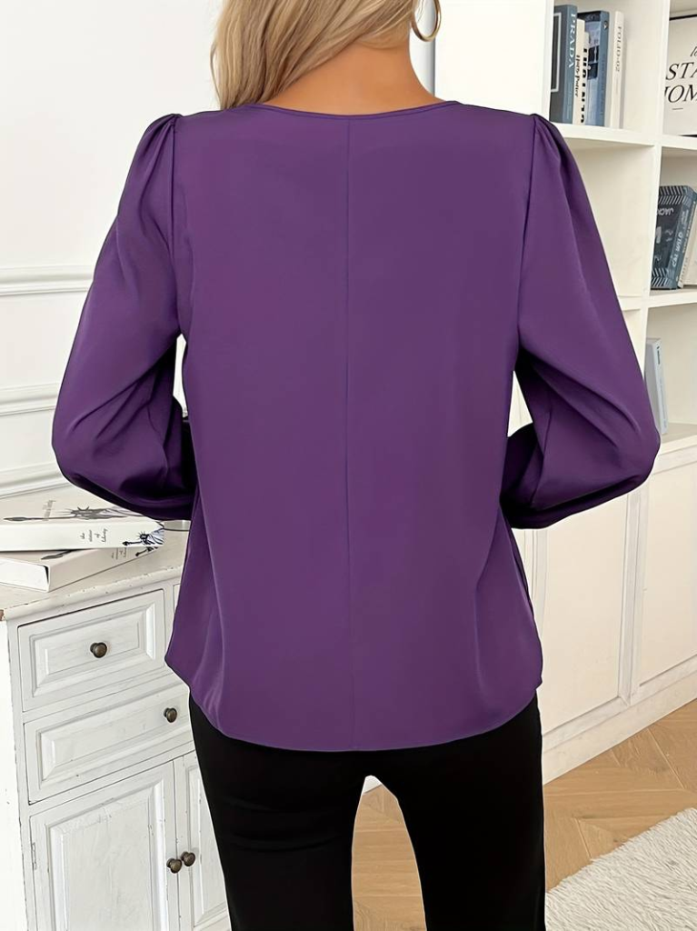 Kadın Uzun Kollu Yuvarlak Yaka Damla Detay önden Büzgülü Krep Bluz