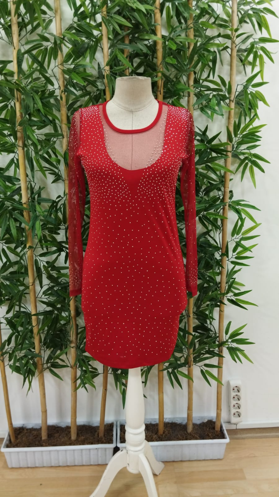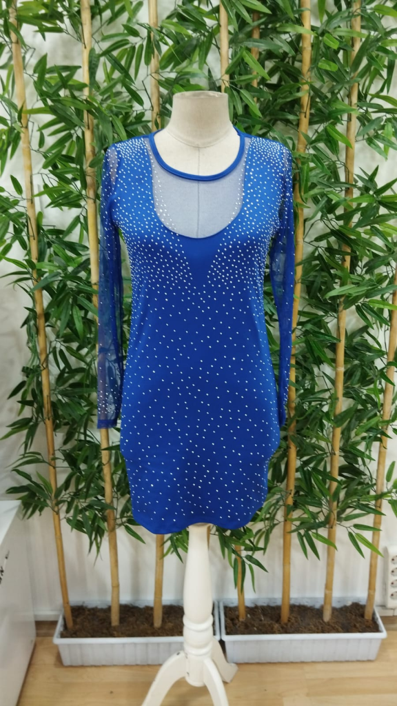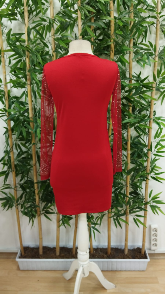 Kadın Uzun Kollu Yuvarlak Yaka Dekolteli Taşlı Dalgıç Elbise