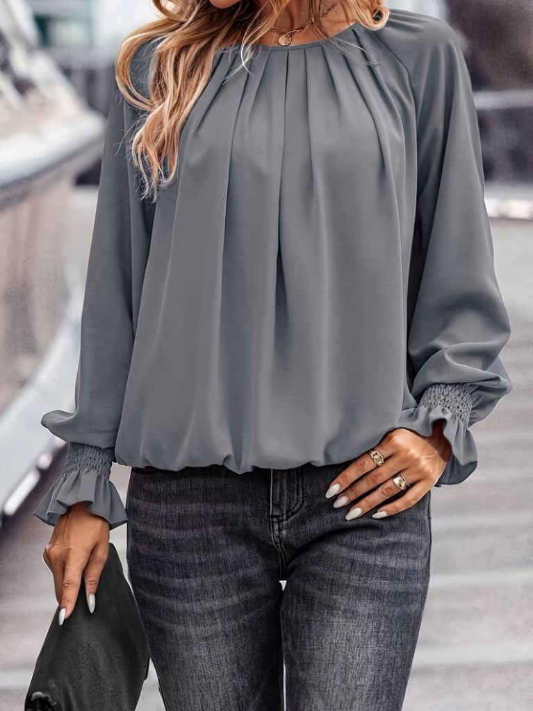 Kadın Uzun Kollu Yuvarlak Yaka önden Büzgülü Sandy Bluz