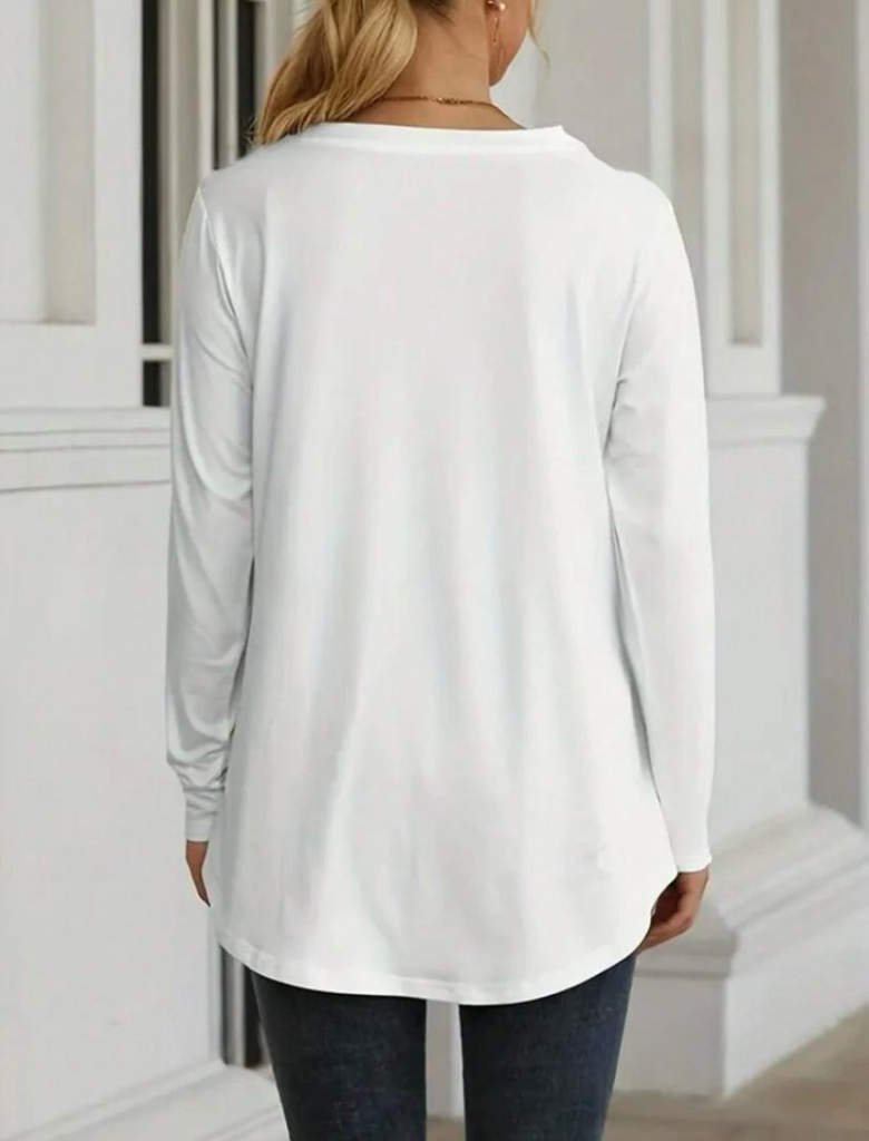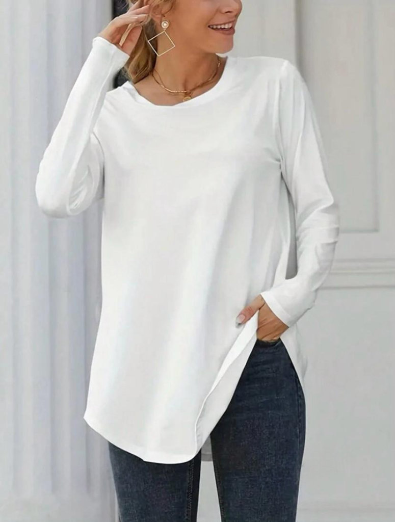 Kadın Uzun Kollu Yuvarlak Yaka Salaş Iki Iplik Bluz
