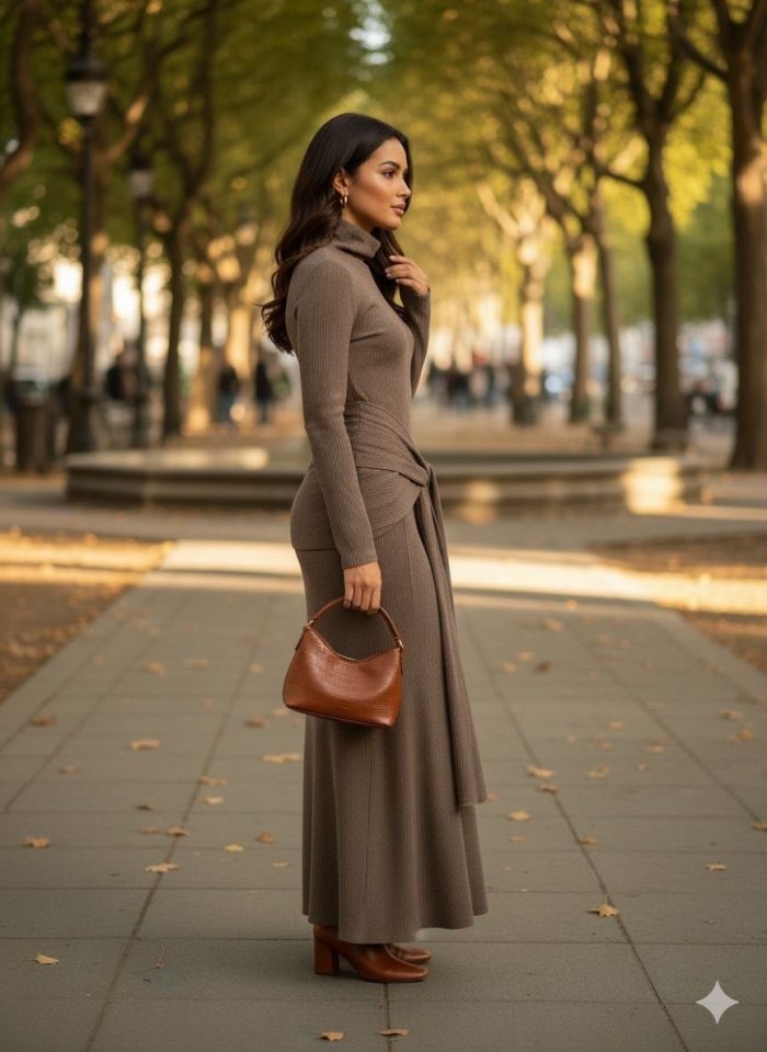 Kadın Uzun Kollubalıkçı Yaka Bürümcük Kumaş Kuşak Dahilkalem Elbise