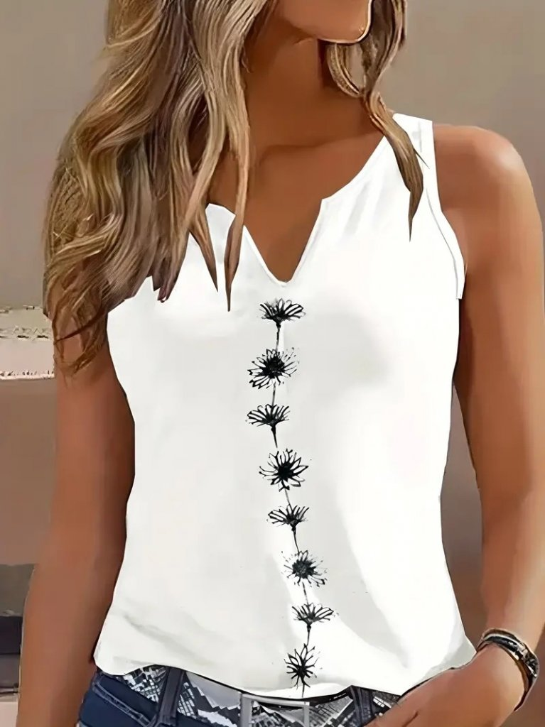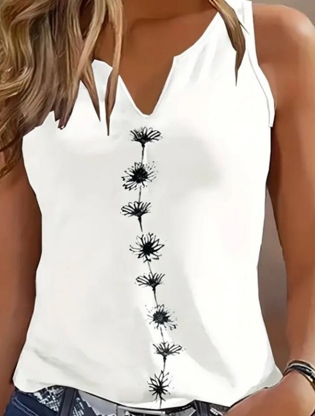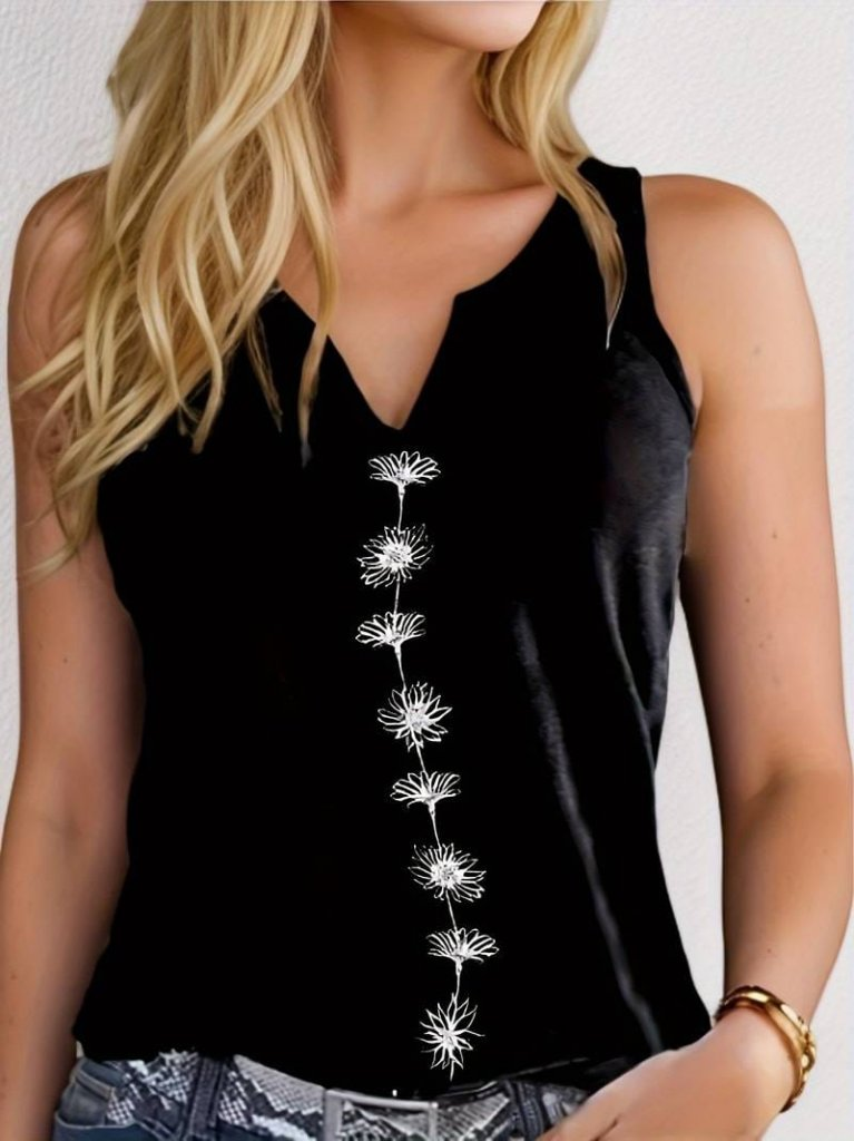 Kadın V Yaka Su Yolu çiçek Baskı Kolsuz Viskon Bluz