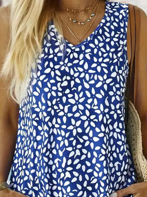 Kadın V Yakalı çiçek Baskılı Salaş Süprem Bluz