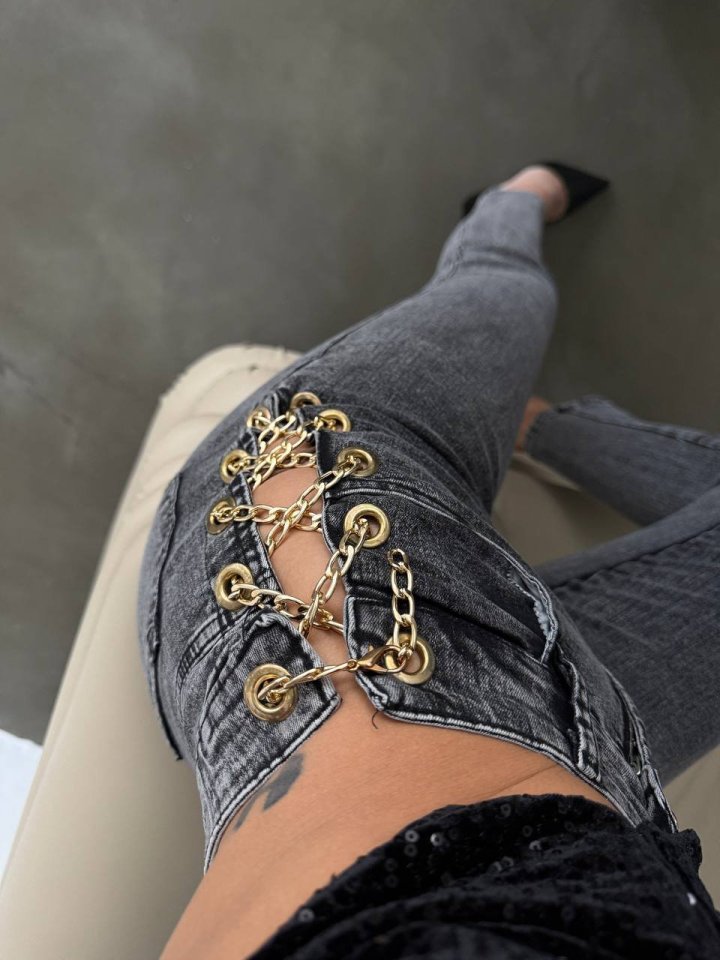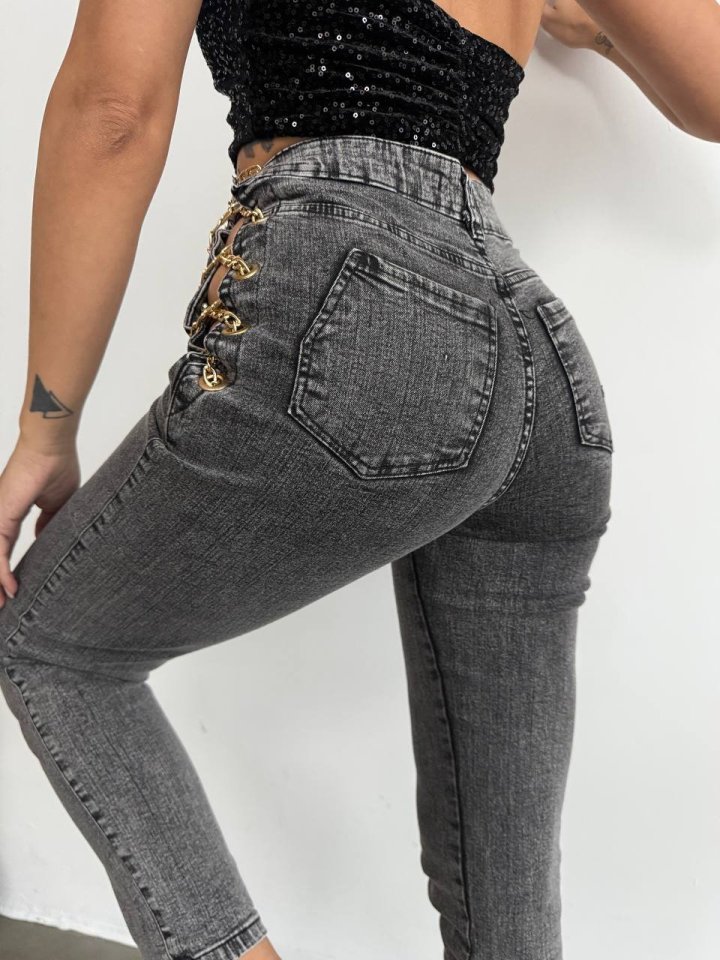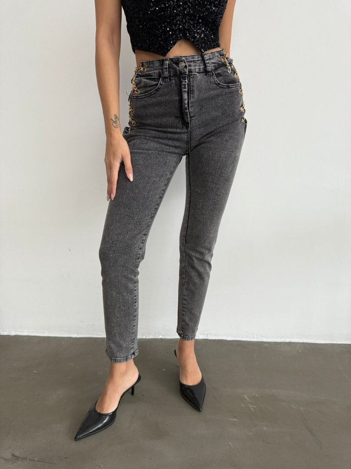 Kadın Yandan Zincir Ve Kuş Gözü Detaylı Jean Kot Pantolon