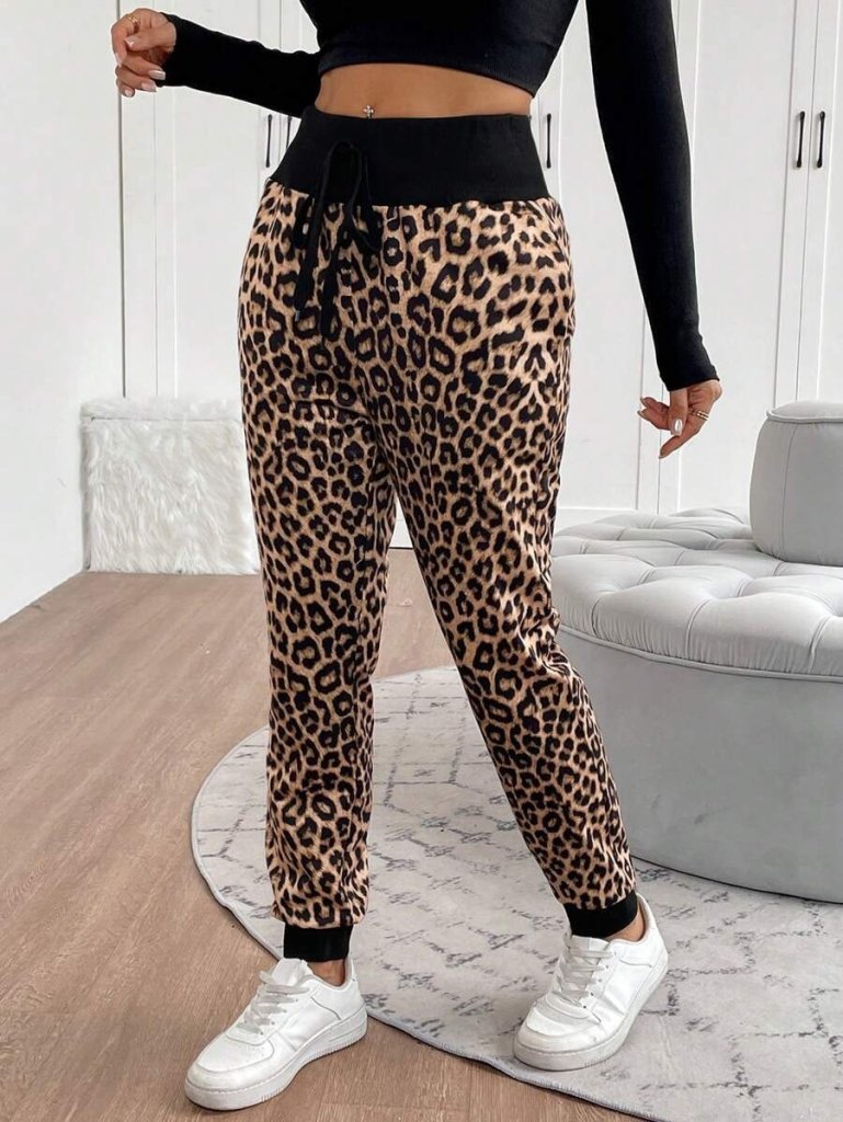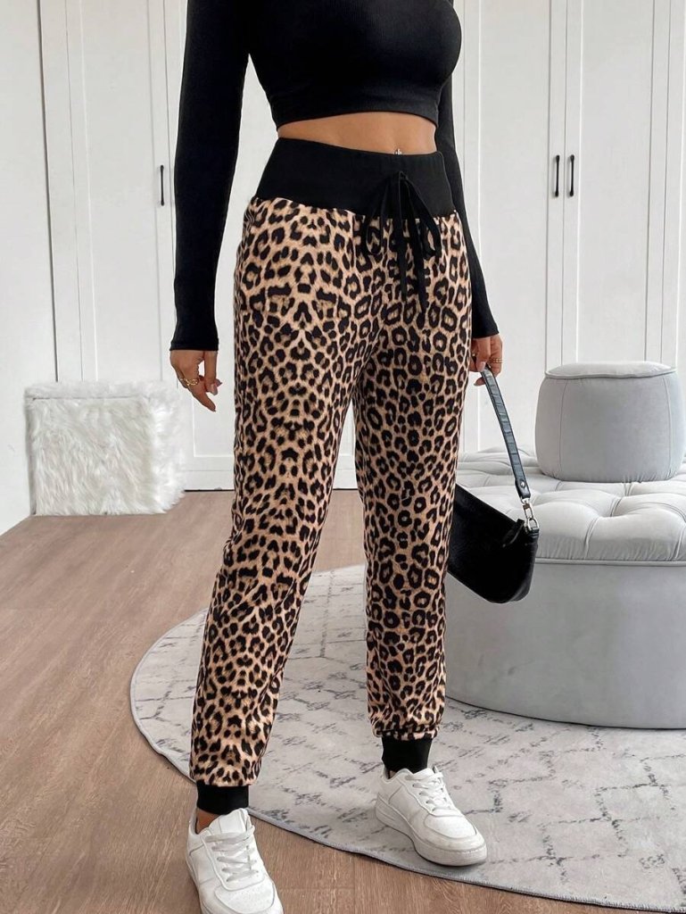Kadın Yüksek Bel Bağcıklı Desenli Iki Iplik Pantolon