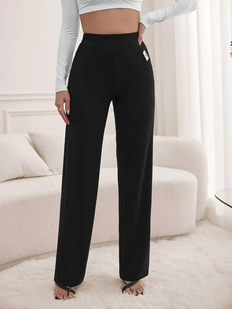 Kadın Yüksek Bel Cepli Geniş Kesim Ithal Krep Pantolon