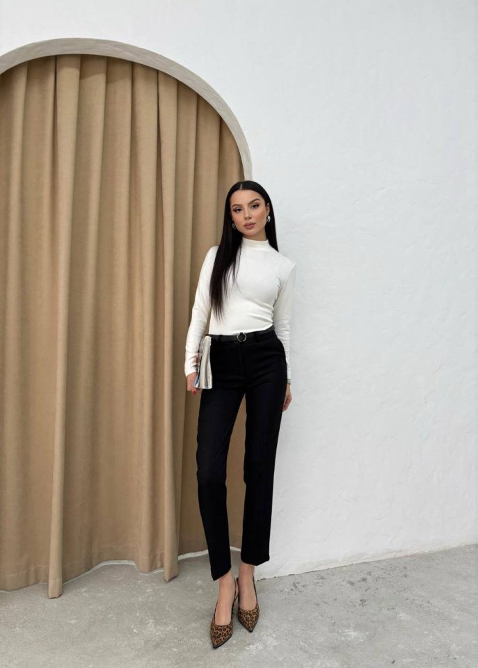 Kadın Yüksek Bel Dar Paça Kemer Dahil Kumaş Pantolon