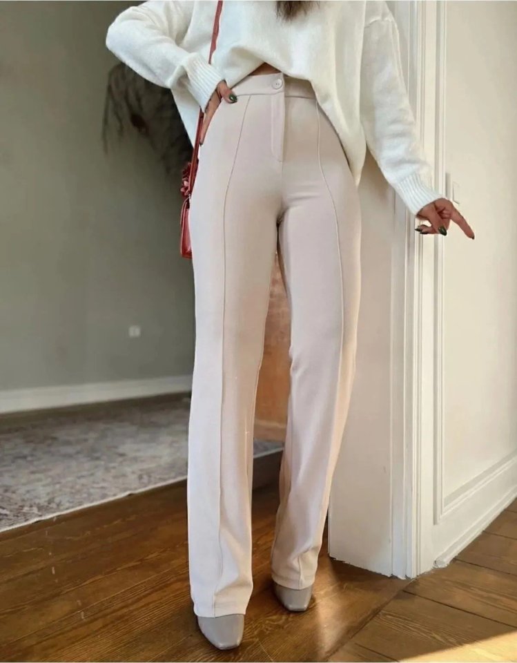 Kadın Yüksek Bel Full Likralı Krep Kumaş Pantolon