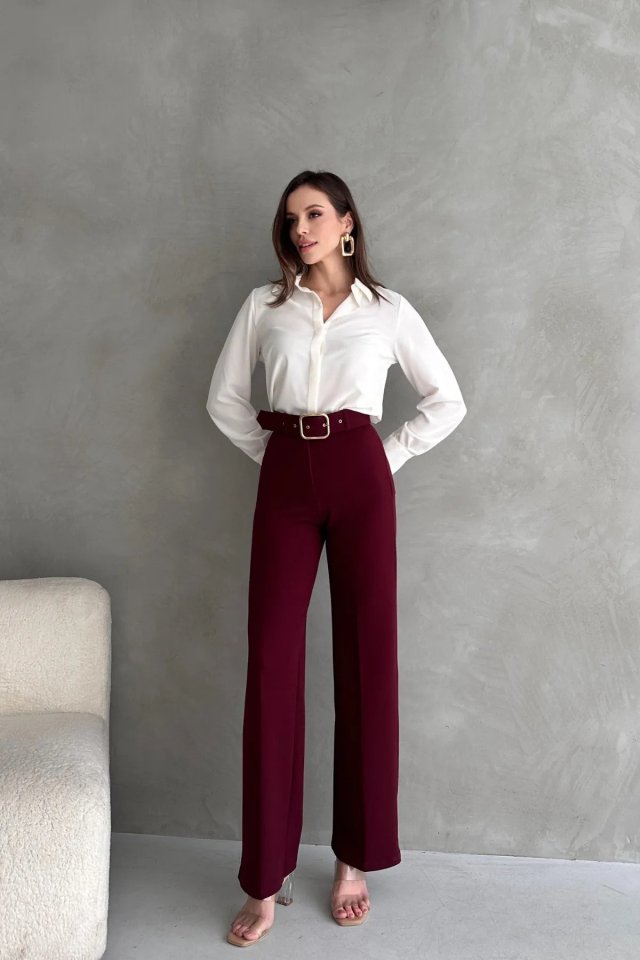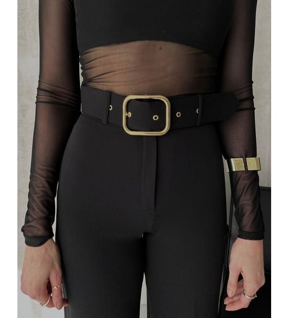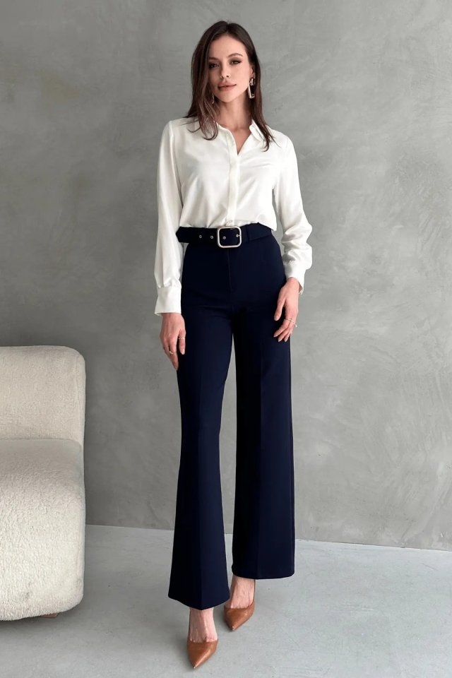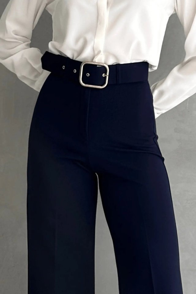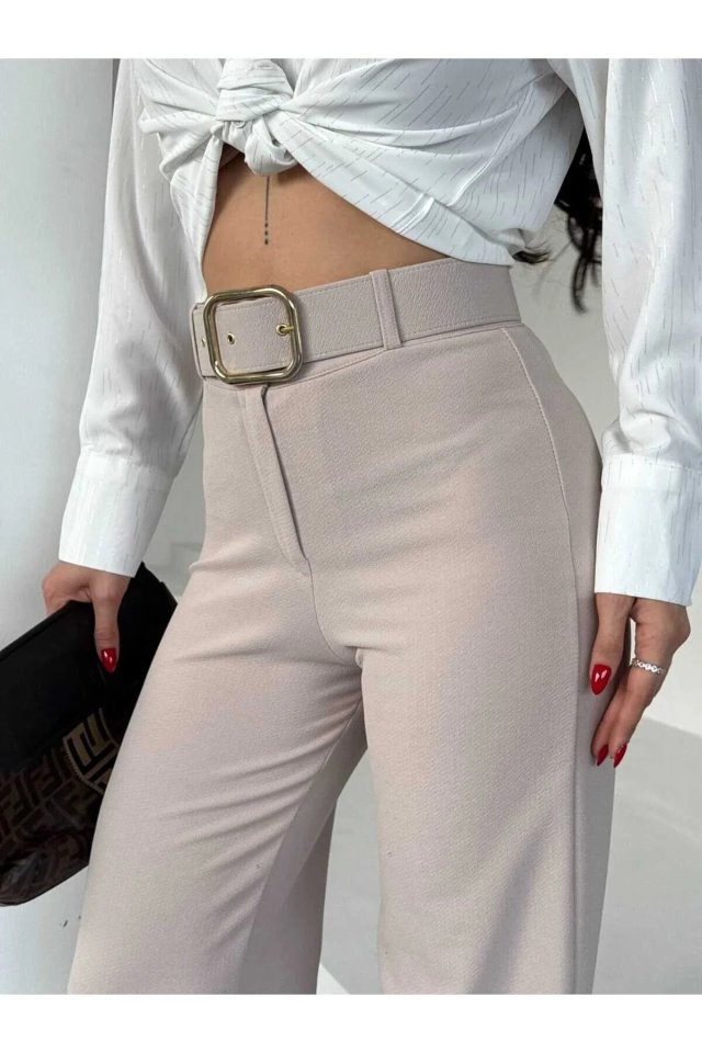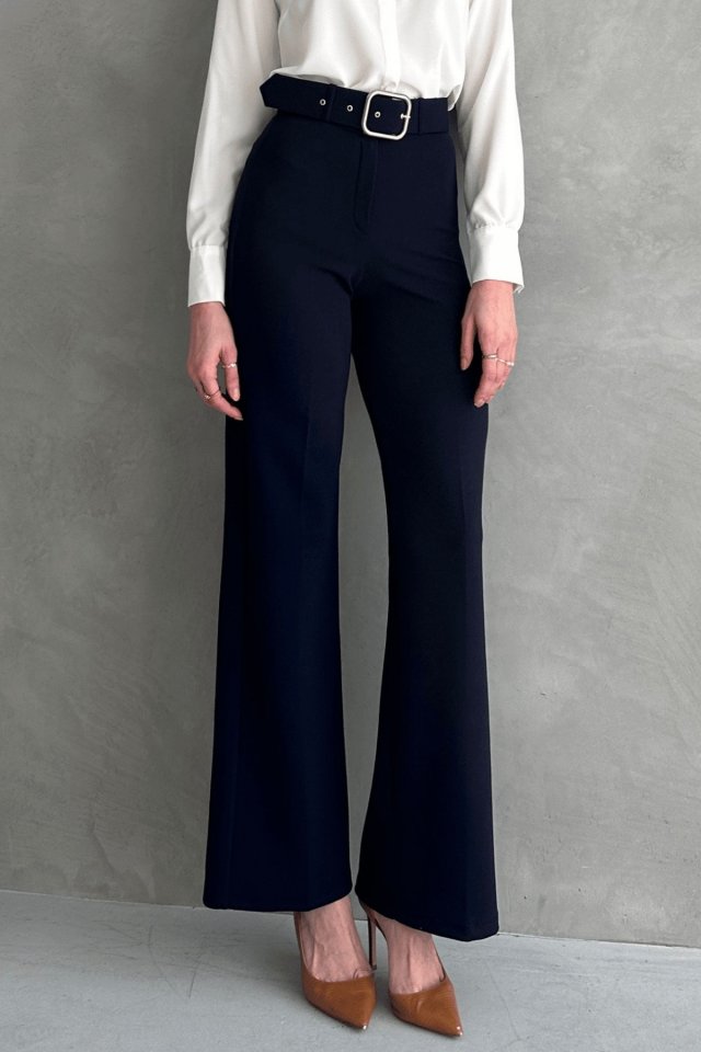 Kadın Yüksek Bel Krep Kumaş Full Likralı Ispanyol Paça Kemer Dahil Pantolon