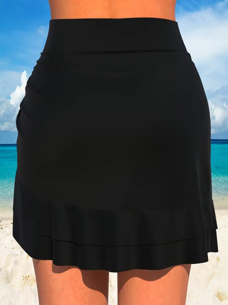 Kadın Yüksek Bel Yandan Büzgülü Fırfırlı Kısa Sandy Etek