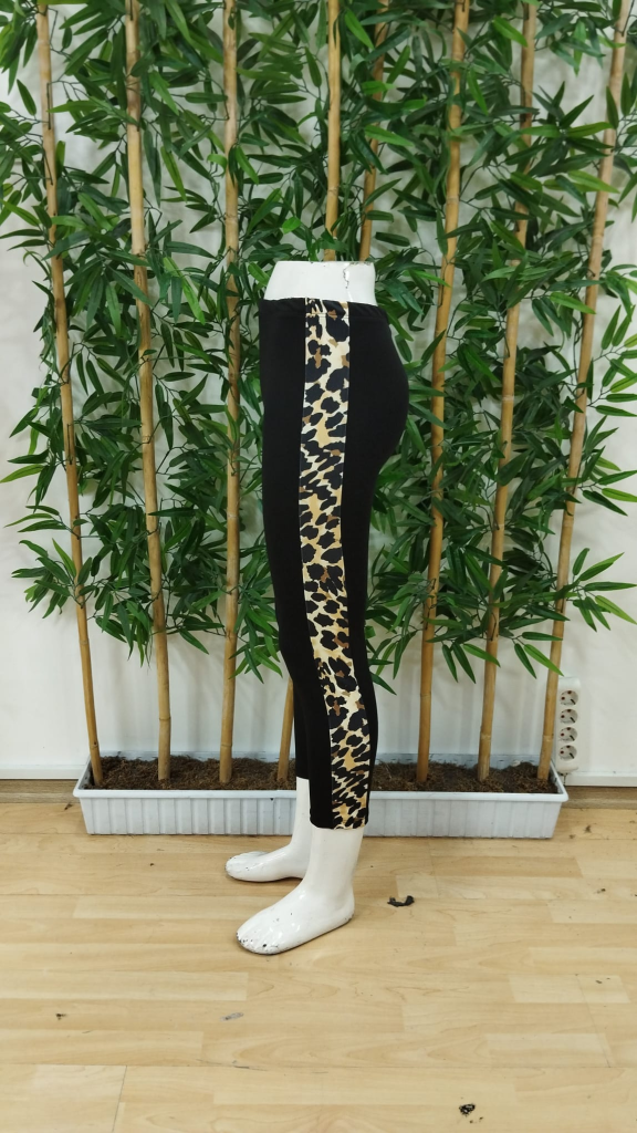 Kadın Yüksek Bel Yanları Leopar şerit Detay Dalgıç Tayt