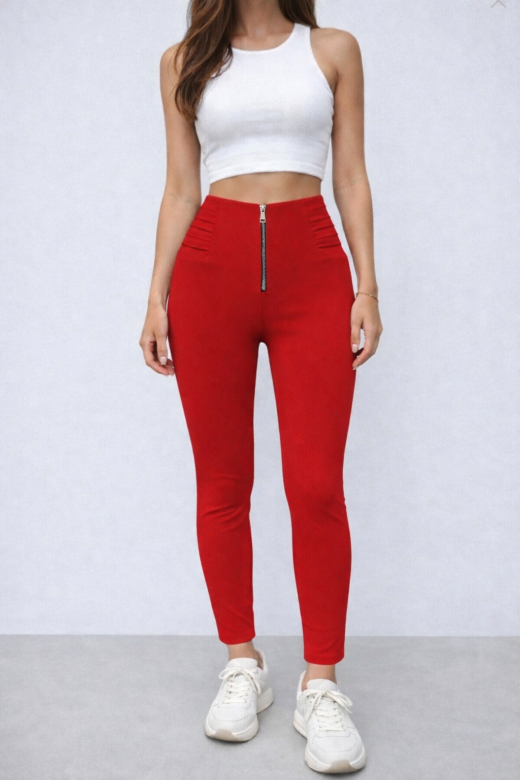 Kadın Yüksek Belli önden Fermuar Ve Nervur Detaylı Dalgıç Tayt