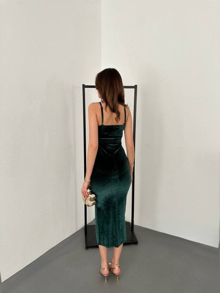 Kadınomuz Askılı Sırt Dekolteli Yırtmaç Detay Midi Boy Elbise Yırtmaç Detay Midi Boy Elbise
