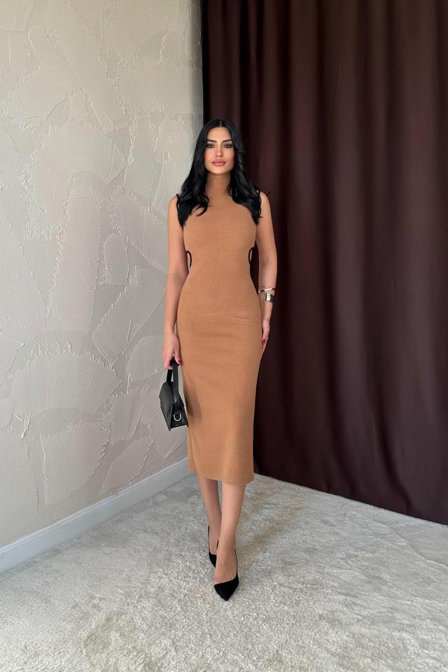 Kahverengi Biyeli Triko Elbise