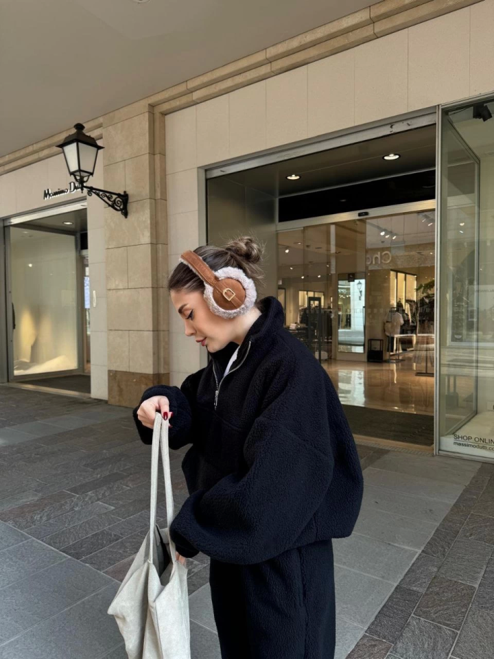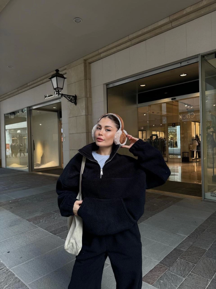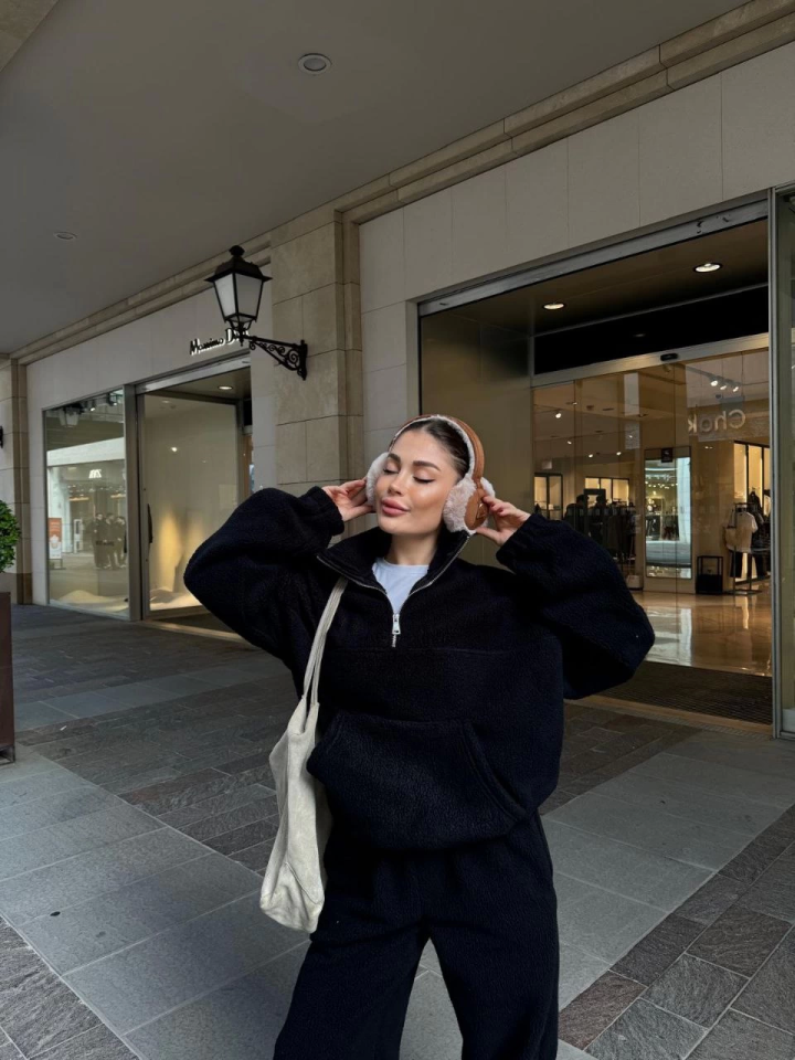 Kalın Polar Yakalı Fermuarlı Sweat Pantalonlu Takım – Siyah