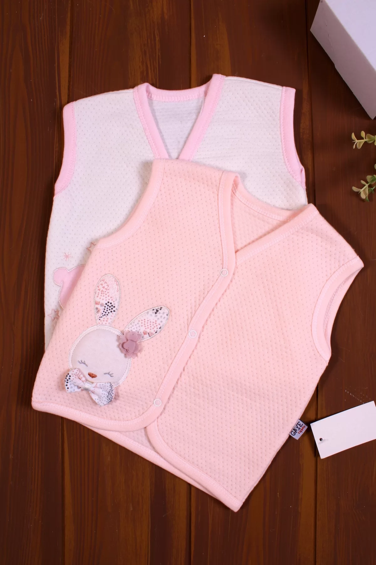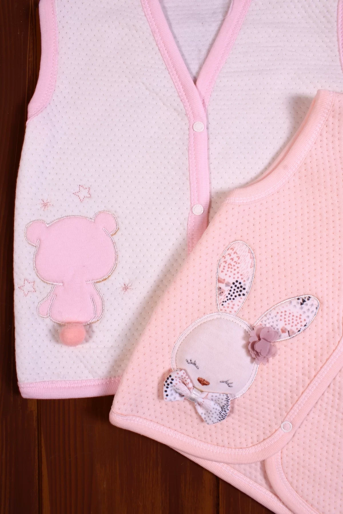 Kapitone Nakışlı Kız Bebek Yeleği 2’li Paket
