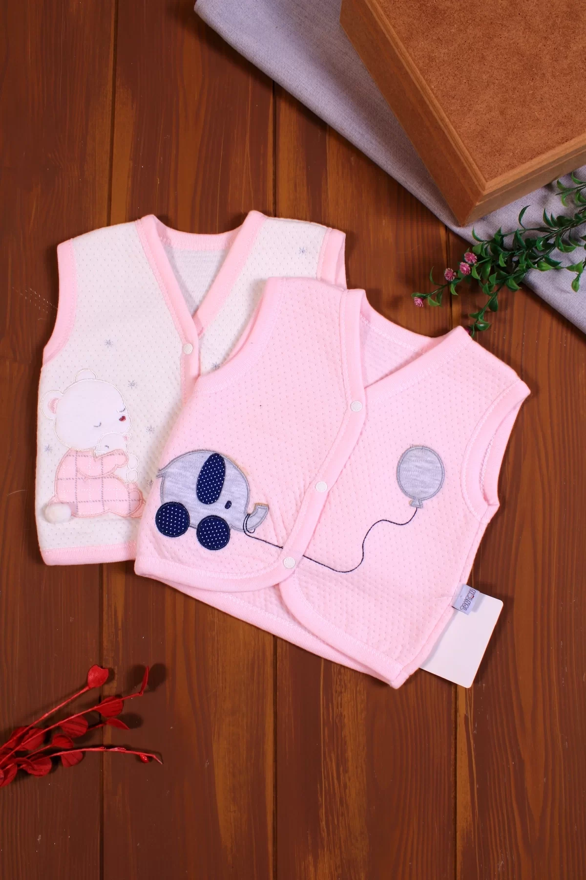 Kapitone Nakışlı Kız Bebek Yeleği 2’li Paket