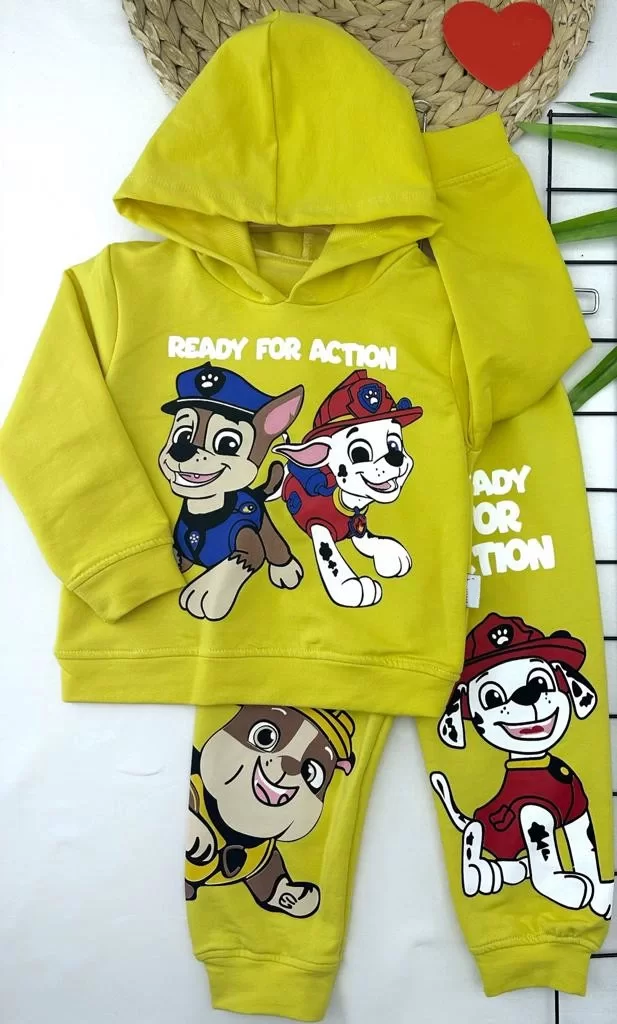“Kapşonlu Baskılı Sweatli Uzun Kollu 2li Kız Erkek Bebek Çocuk Takımı Sarı” için yorum yapan ilk kişi siz olun