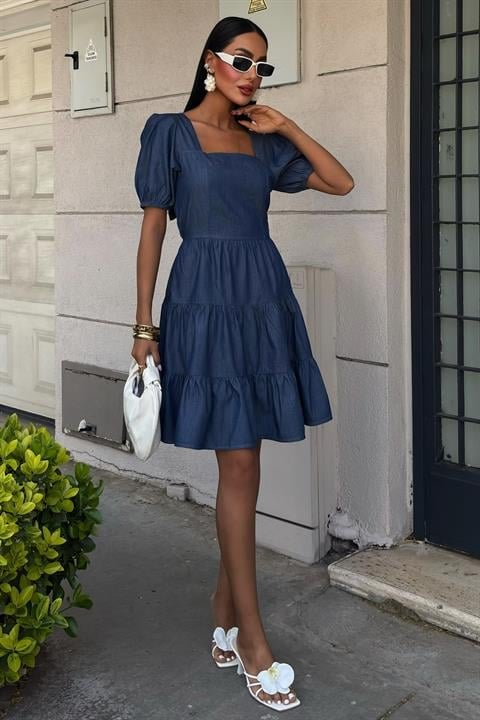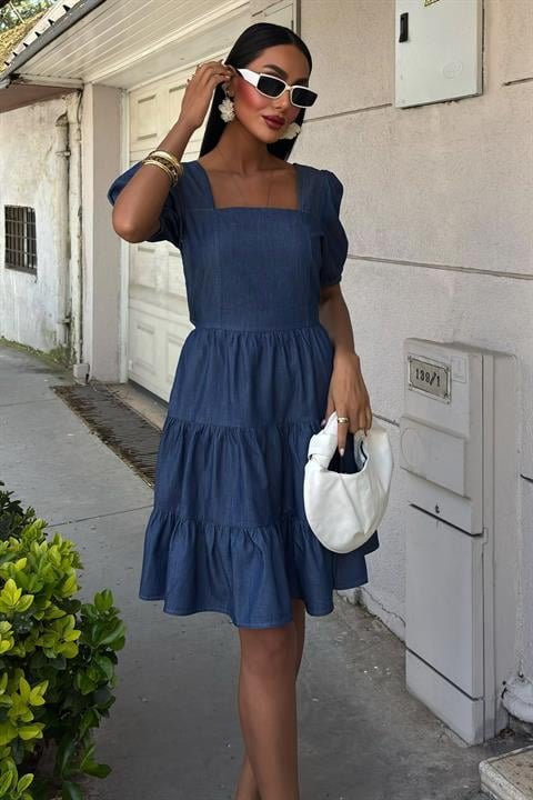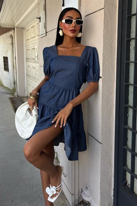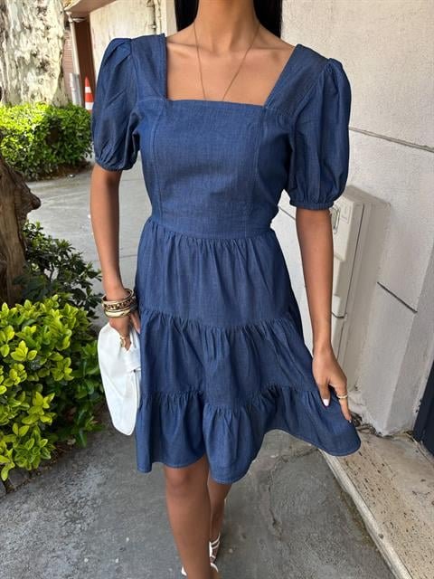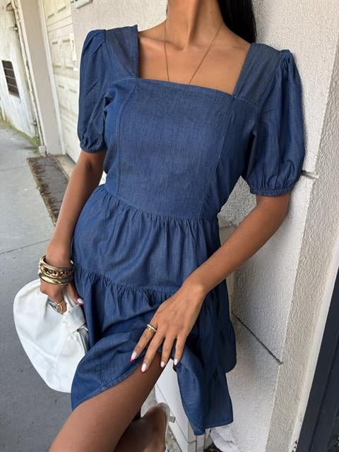 Kare Yakalı Ve Gipe Detaylı Tensel Elbise 2883