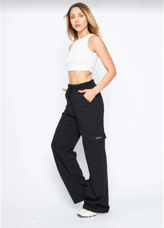 Kargo Cepli Palazzo Oversize Kesim İki Iplik Bol Paça Eşofman Altı Pantalon – Siyah