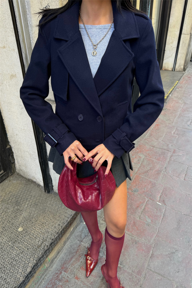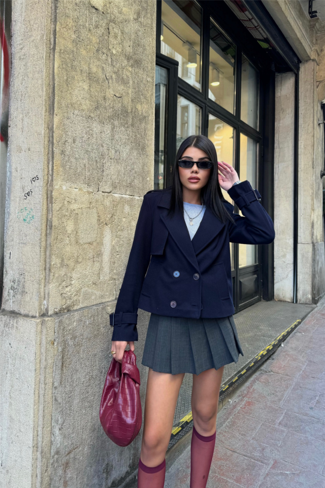 KAŞE CROP 4 DÜĞME CEKET – Lacivert