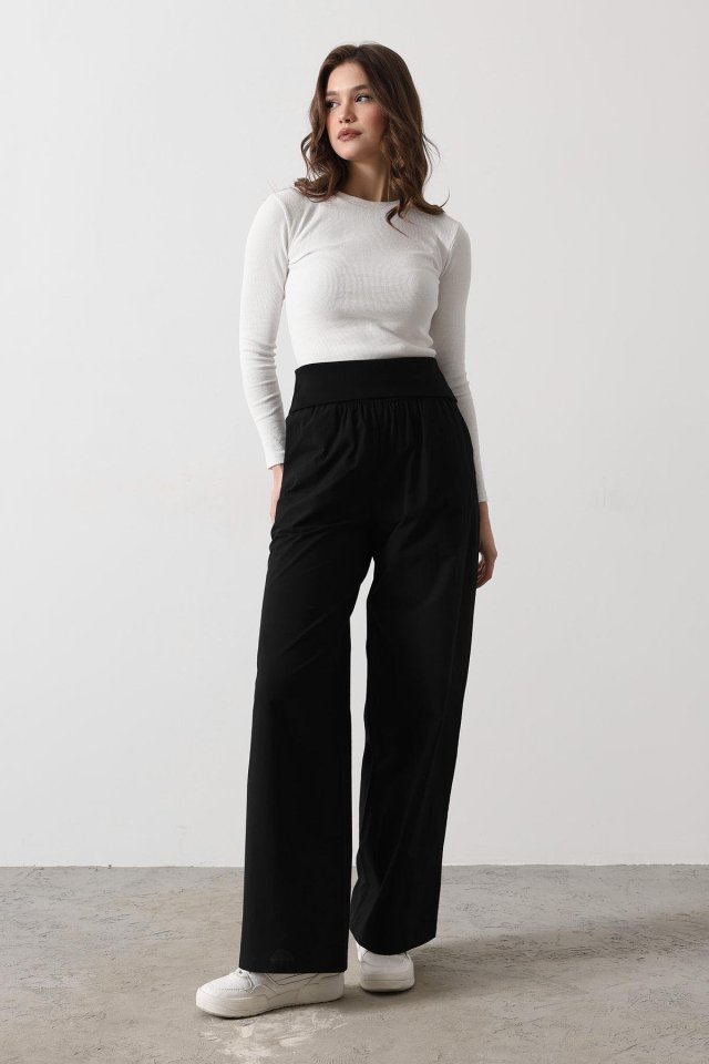 Katlanabilir Bel Pantolon – Siyah