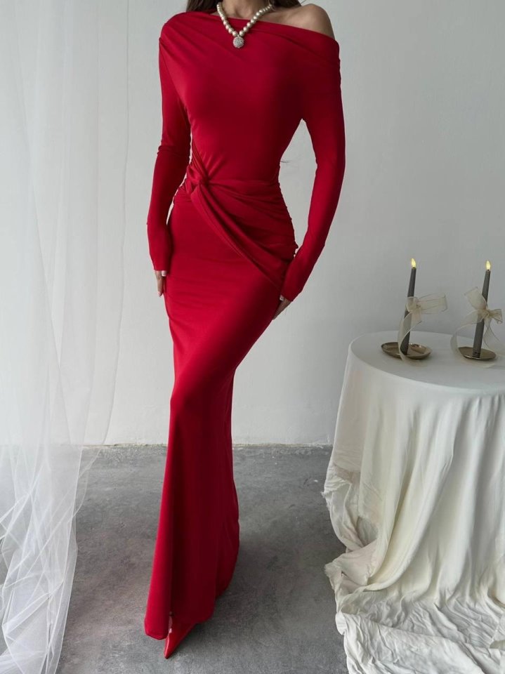 Kayık Yaka Uzun Kurdele Elbise