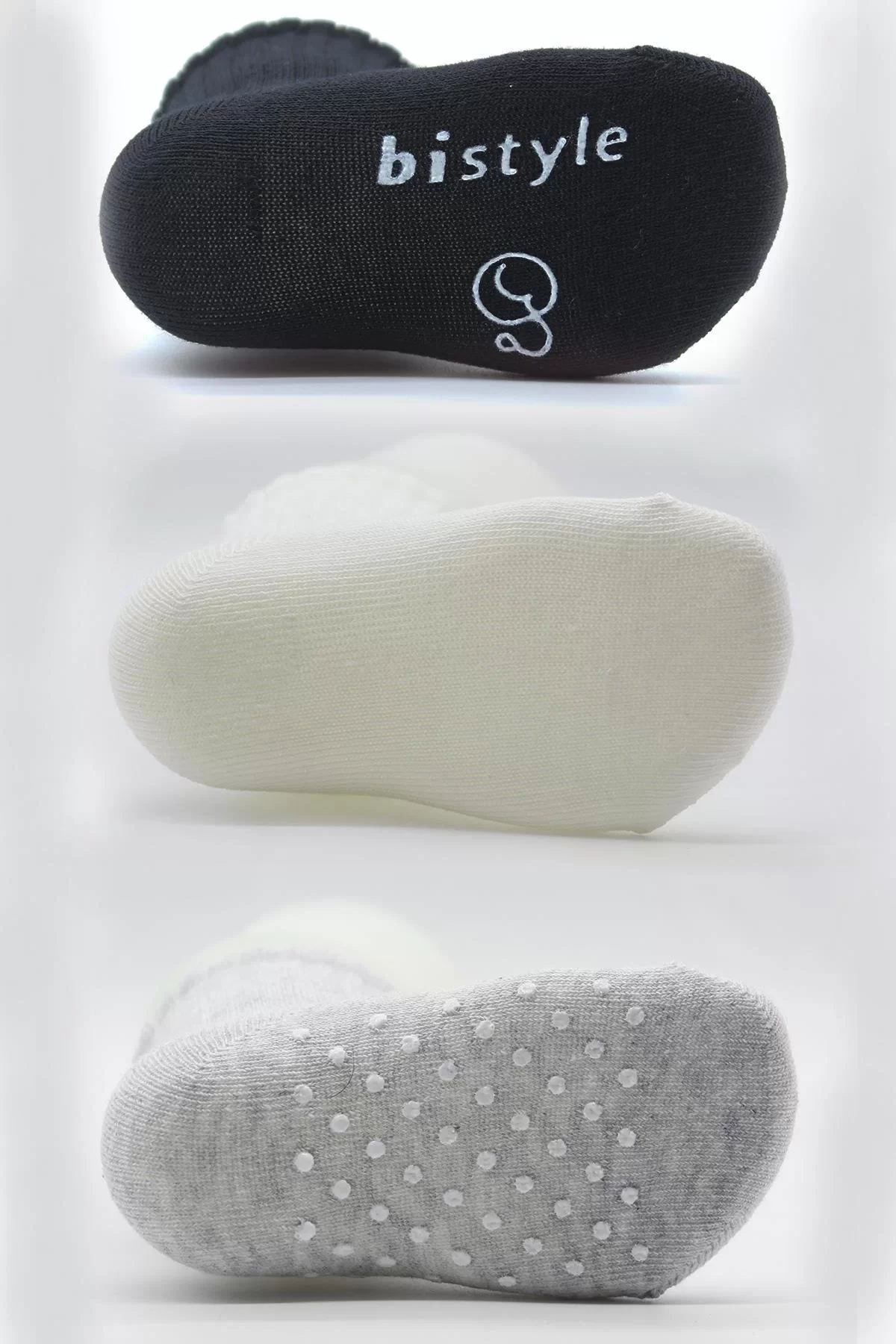 Kaymaz Penye Soket Çorap 3’lü Siyah Ekru Gri