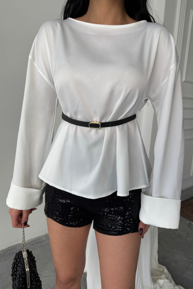 KEMER DETAYLI SATEN BLUZ – Beyaz
