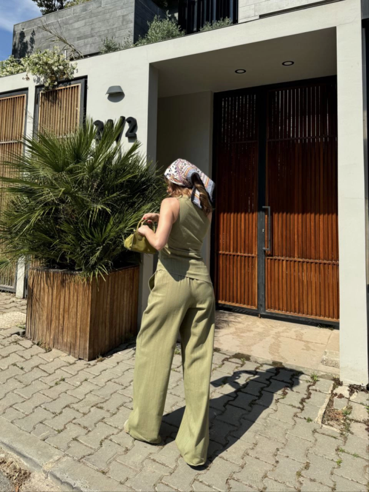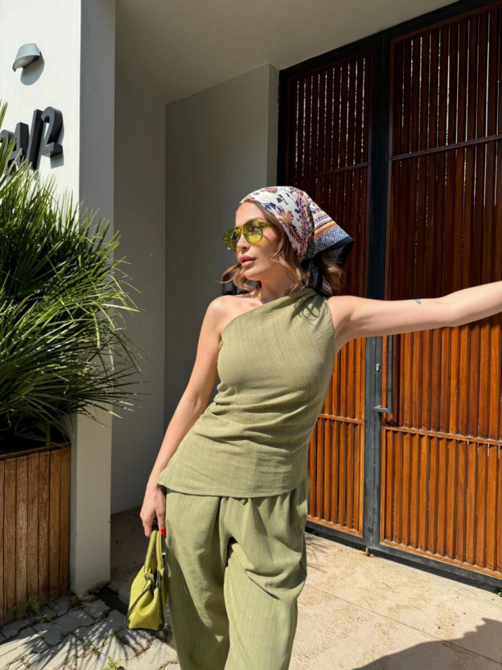 “Keten Asimetrik Tek Omuzlu Bluz Pantalon Takım- Su Yeşili” için yorum yapan ilk kişi siz olun