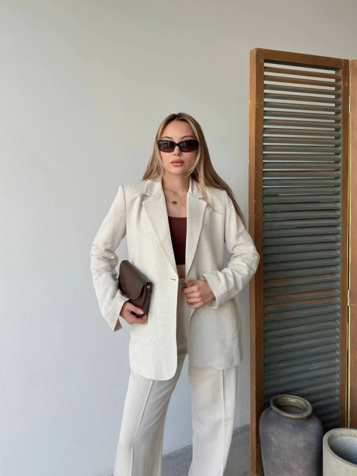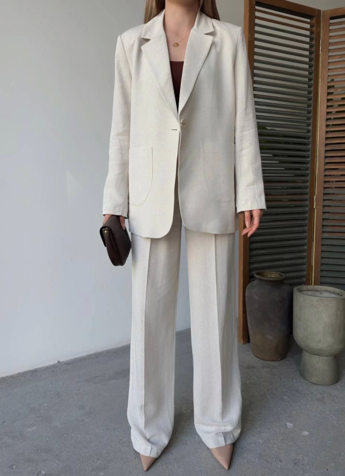 Keten Ceket Pantolon Ikili Takım – Beyaz