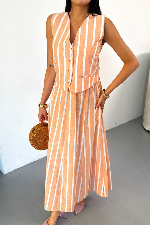 KETEN ÇİZGİLİ YELEK – UZUN ETEK TAKIM – Orange