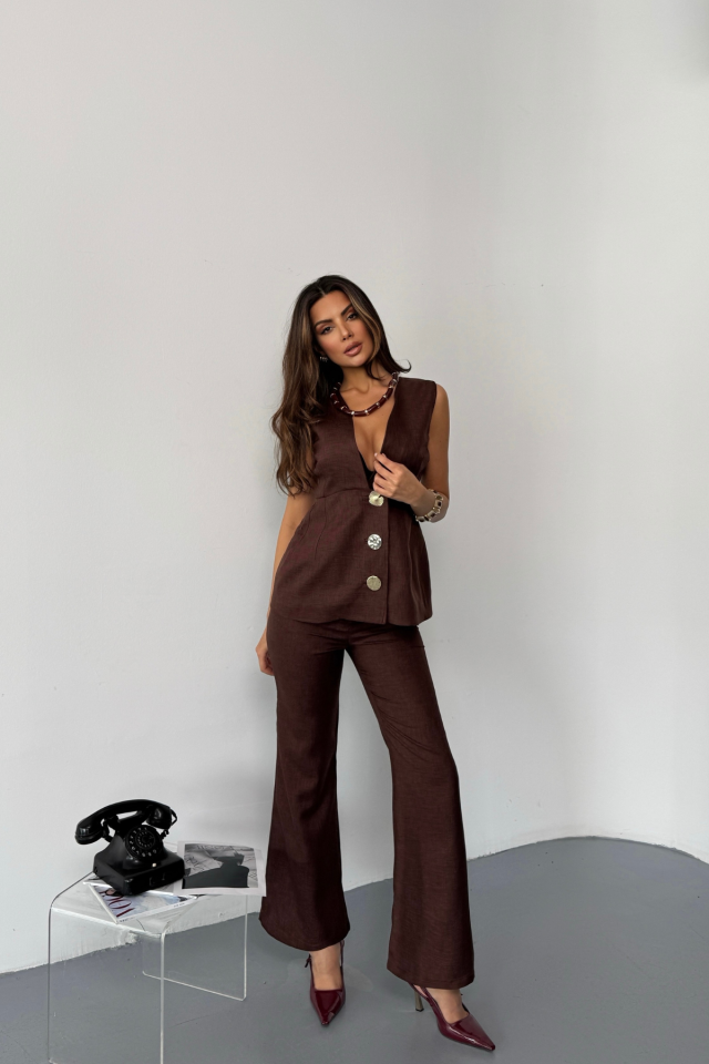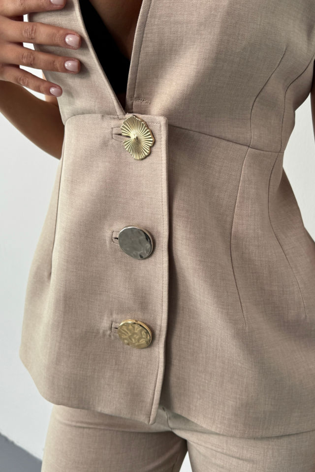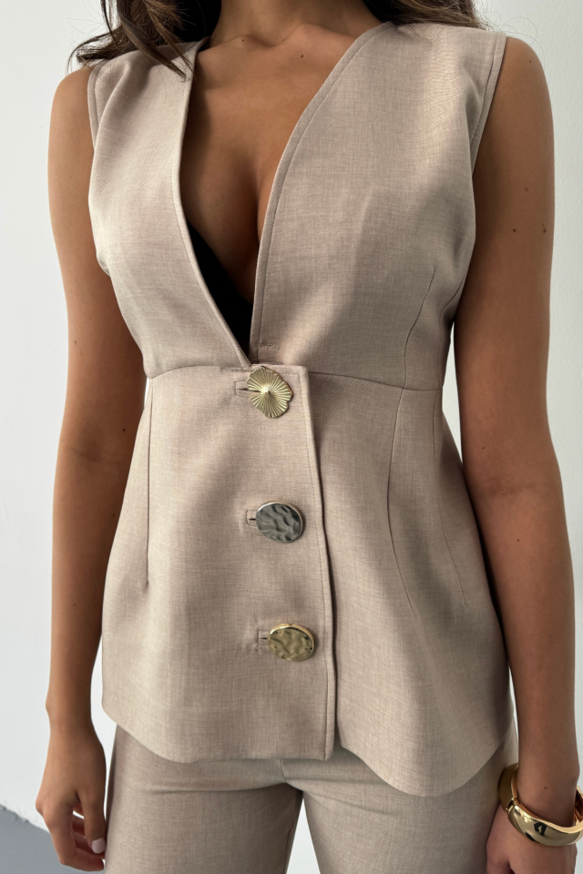 KETEN GOLD DÜĞMELİ YELEK – PANTOLON TK – Bej