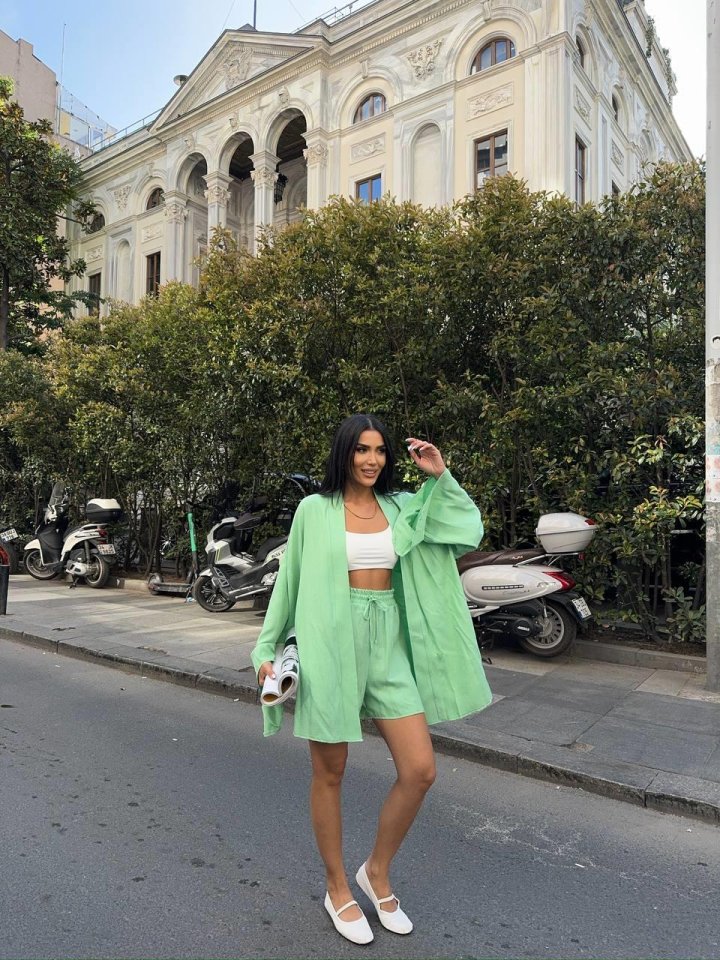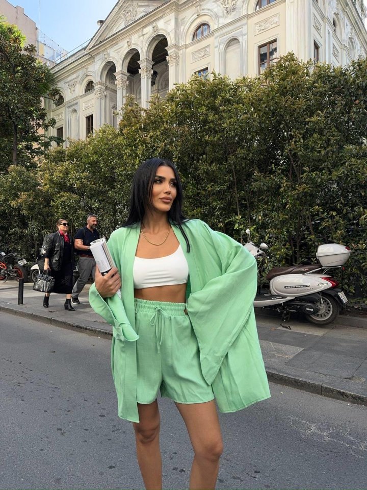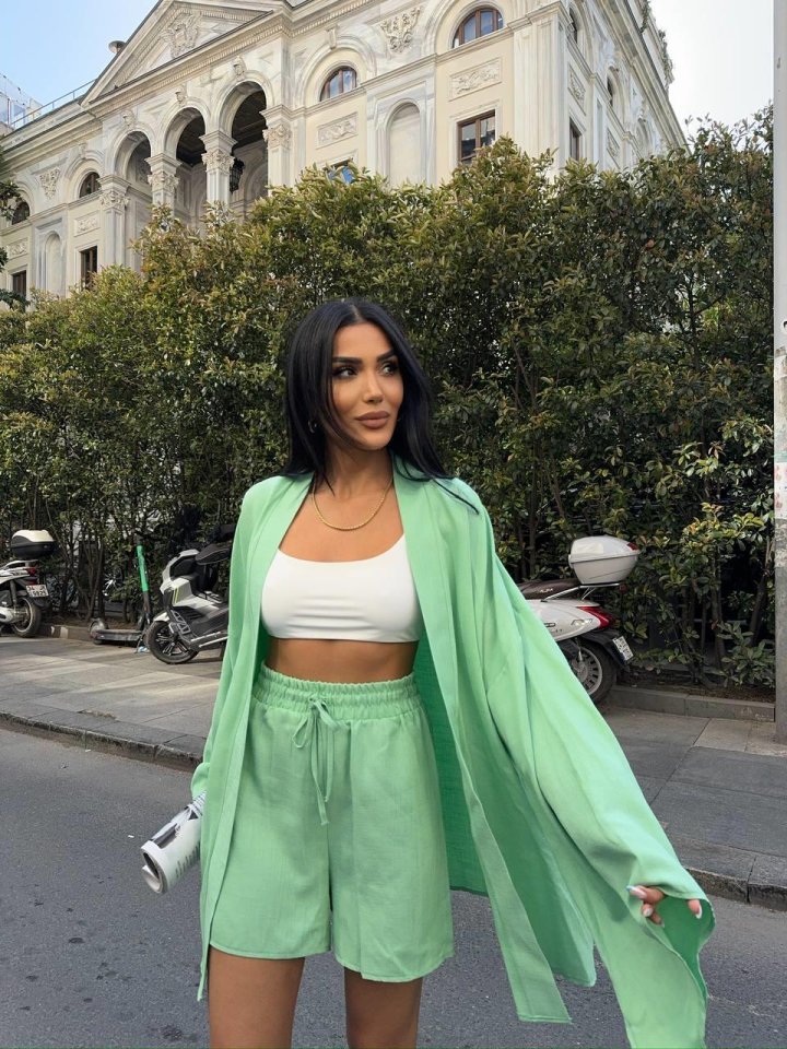 KETEN KİMONO – ŞORT TAKIM – Yeşil