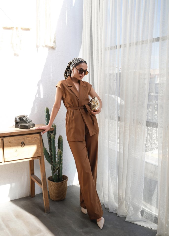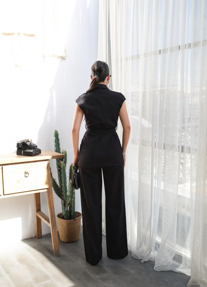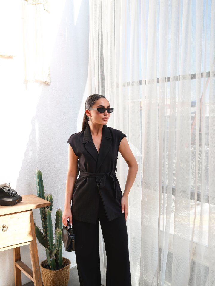 Keten Kuşakli Yelek Ve Pantolon İki̇li̇ Takim