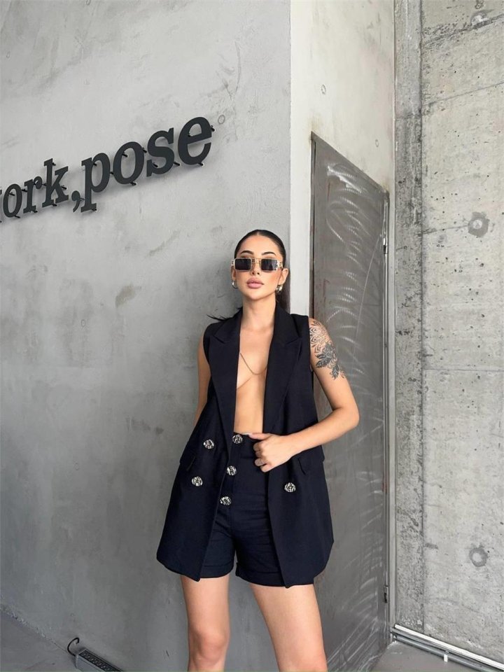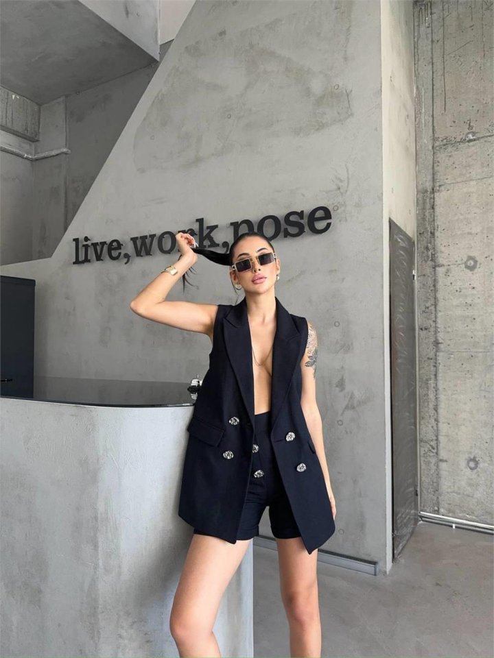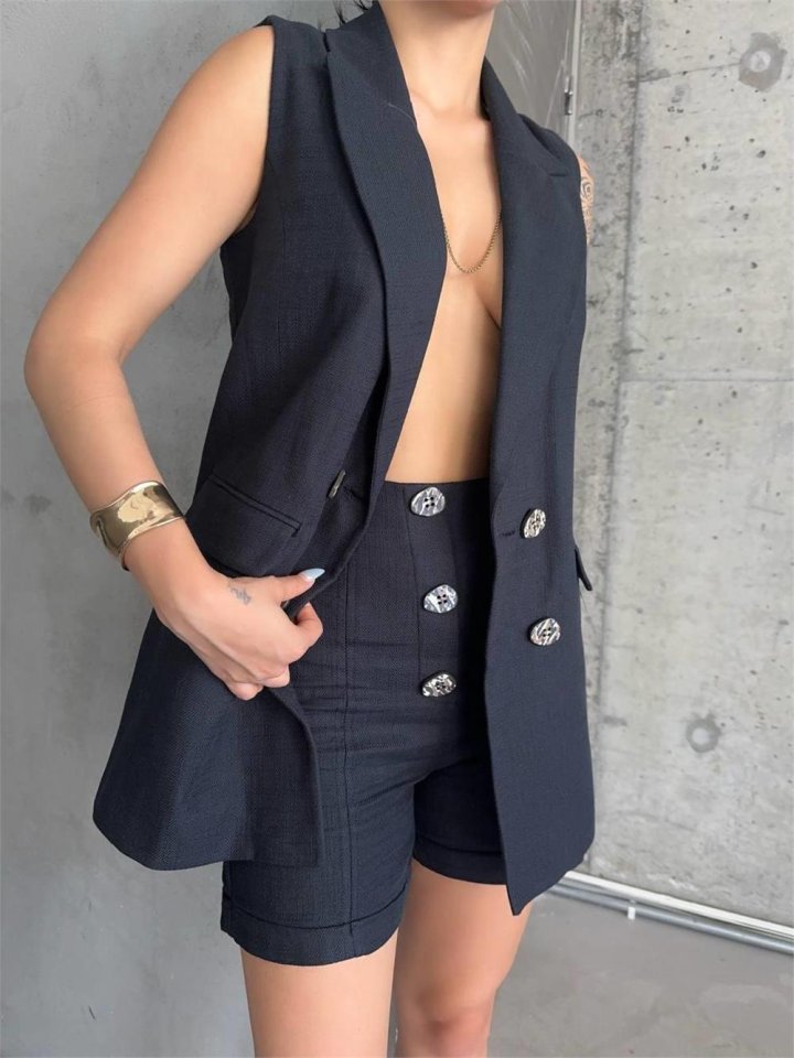 KETEN YELEK – ŞORT TAKIM – Siyah