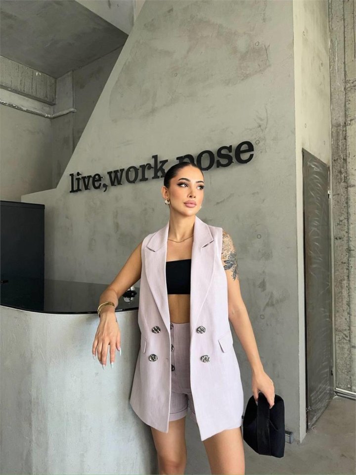 KETEN YELEK – ŞORT TAKIM – Vizon