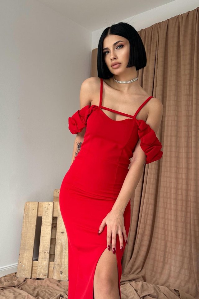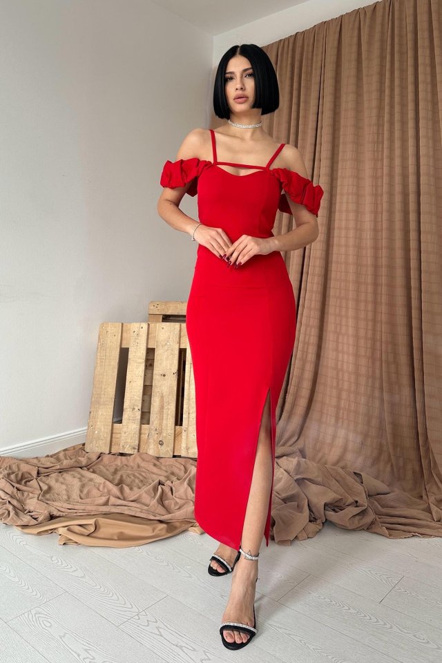 Kırmızı Askı Detaylı Elbise